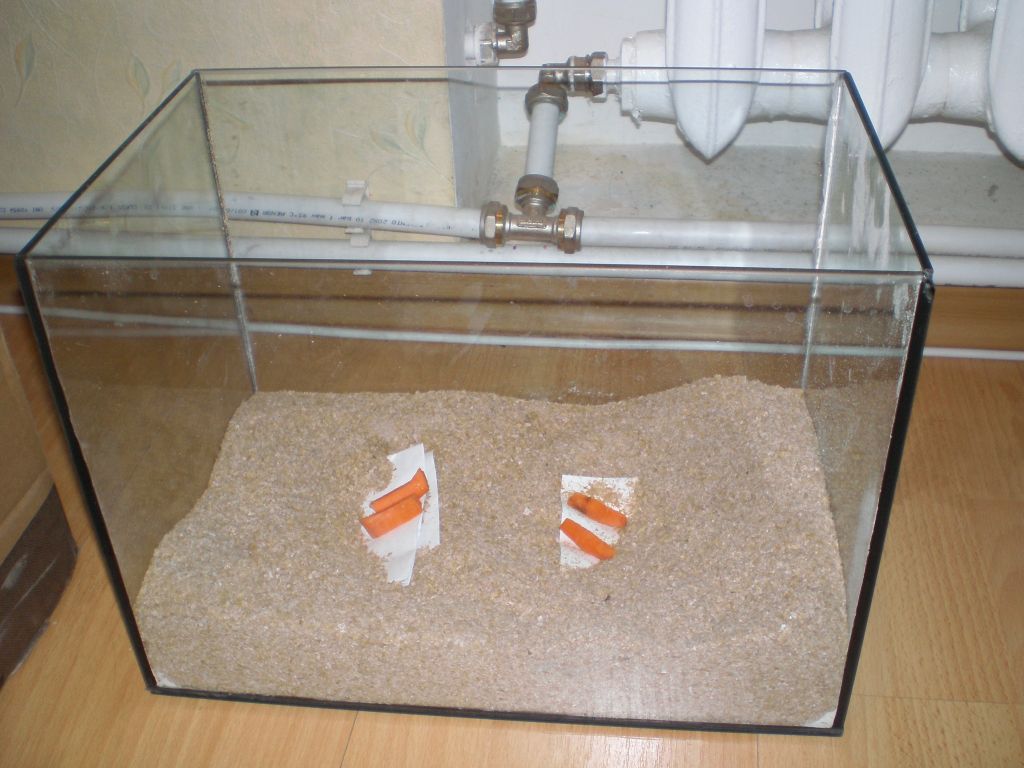 Данияр Опубликовано 18 августа, 2008 #69 Опубликовано 18 августа, 2008 Расскажу о своём заводе. У меня 5 трех литровых баллона на 1/3 заполненных отрубями. Сверху сложенная как носовой платок тряпочка (4 и более слоя). Тряпочка из х/б материала, желательно от старой одежды, тк она лучше принимает воду. В каждой банке по 40-50 жуков. Тряпочку, не вынимая из банки мочу каждый день водой. Прямо сверху мед. шприцом для инъекций, тонкая струя воды позволяет это сделать равномерно. Весь секрет в том, чтобы намочить тряпочку, при этом последний слой оставить практически сухим. Т.е. не дать воде попасть на отруби. Последствия - плесень, ходячая белая пыль, отруби превратившиеся в комок. Жукам ничего кроме воды и отрубей не даю. Живут очень долго. Тк площадь ограничена небольшим диаметром банки, то любой фрукт-овощ, поставленный на мокрую тряпку будет покрываться плесенью. Что совсем не желательно. Производство будет происходить у вас на глазах. Через 2-3 недели Вы увидите, что дно банки практически полностью залеплено кладками яиц - кучки по 10-15 штук. Далее появляются мелкие черные червячки и нижний слой отрубей постепенно превращается в "муку". Те отруби начинают поедаться личинками, которые вырисуют множество ходов за стеклом банки. Чем крупнее червячок тем выше к поверхности он выбирается. Наступает время пересадить жуков. 80-90% процентов жуков всегда находится в слоях тряпки. Я ее не расправляя перекладываю в другой баллон. Не беда если с тряпкой попадут в новый баллон не большое кол-во мельчайших червячков. И так все 5 банок меняются на новые. 10-20% жуков остаются в отрубях, но каждый день, нуждаясь в воде, отложив яйца, они будут выходить на поверхность. Банки стоят рядами 5 Х 2. Вам не составит труда каждый день столовой ложкой вернуть выползающих жуков в своё стадо в новой банке. Это дело трех-четырех дней. Большой плюс банки, заполненной лишь на треть, именно в том, что жуки мучника практически не вылетают из нее. Я ничем не прикрываю горловину.Вы видите, что в банке с червями начинается возня, на поверхности появился слой хитина. Без проблем можно бросать червям любую зелень, овощи-фрукты. Станет заметно, что отруби уже съедены, а черви слишком малы для просева. Необходимо просто досыпать отруби до 2/3 банки. Пока все это съестся, то черви будут достаточно крупны для этого. Содержимое 5 банок с червями мелкого и среднего размера, просеяв, я запускаю в пластиковый таз с новыми отрубями. Здесь черви доходят до кондиции. Кормите и зеленью, и рыбой - нет проблем. В большом тазе, по мере скармливания, вы всегда сможете выбрать крупных жуков, куколок, чтобы восстанавливать воспроизводство. На 10 банок в обороте, у меня три больших таза. Разводить жуков в 3-х литровых баллонах меня научил Vladimir, за что ему благодарен. Для меня этот способ оказался наиболее удобен по всем параметрам.