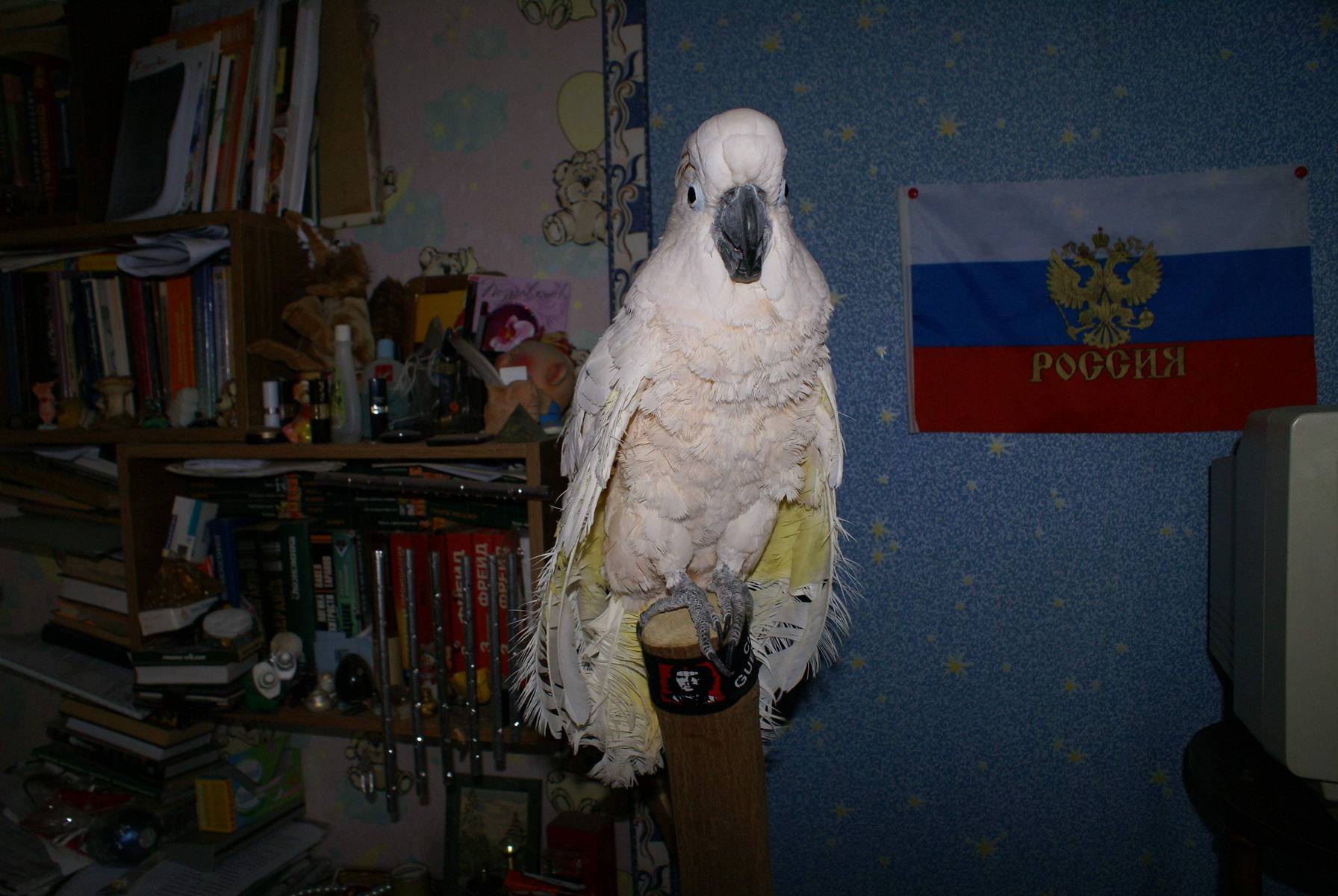 zoya Опубликовано 8 декабря, 2007 Автор #3 Опубликовано 8 декабря, 2007 Собственно история: Позвонила мне мама, посоветоваться - какого попугайчика лучше купить на 80-ти летие бабушки ее подруги. Поскольку предыдущий (волнистик) упокоился естественной смертью от старости. И вариантов было два: "зеленый такой, без хвоста или большой такой белый". Соответственно посоветовав купить бабушке вместо амазона или какаду еще одного волнистика, я посчитала миссию выполненой.Но зря. Тетушки съездили и посмотрели оба варианта. В итоге мама моя описывает ситуацию:В госпитале ветеранов войн сидит какаду. Пять лет назад один обеспеченный товарищ приобрел его где-то за границей в подарок своей семилетней дочке. Привез. А через две недели УСЛЫШАЛ. И сразу же решил отдать. Поскольку в это время его отец лежал в госпитале, туда он его и отвез.За пять лет попугай объездил все этажи и отделения - сценарий один, клетку ставят в коридоре, на следующий день больные ( а это дедушки сурового возраста) начинают жаловаться. Клетка едет на другой этаж.В конце концов клетку поставили в богом забытом коридоре рядом с комнатой отдыха (рядом открытый круглогодично балкон) и забыли.И вот месяц назад в госпитале появился новый завхоз, который не будь дурак, решил непонятную для него, но явно дорогую птицу продать. Меня попросили съездить посмотреть - здоровая птица, или нет, и что это вообще за птица, "беленькая такая, с хохолком" И вот сегодня, злая и невыспавшаяся я приехала в это госпиталь и вижу следующее:в коридоре стоит собачья клетка какая-то, ручной сварки, на полу стоит аллюминиевая миска с водой, валяется целое яблоко, два печенья и семечки насыпаны.А в клетке.......Сидит ЭТО. Такое розовое облезлое существо. Без хвоста практически. грязный, облезлый и БОЛЬШОЙ.Люди, которые хотели его купить, сразу разворачиваются и уходят со словами - "за эти деньги это дерьмо... да ему красная цена 2 тысячи". А я остаюсь. Сижу, смотрю на птица. Завхоз говорит "ну и фиг с ними, у меня его берут в фирму, которая кухнями торгует, им на ветрину попугай нужен."И вот что-то тут щелкнуло в голове, непонятное.И я начинаю отчаянно торговаться - просто денег у меня не было столько, сколько он просил. Выторговала. Это был бой Руслана с Головой...У меня деньги были на ноут отложены - хотела себе подарок сделать к новому году.Попросила в рассрочку хотя бы - отказывается.На такси метнулась быстро, деньги привезла.Коробку картонную приносит завхоз и говорит - пересаживайте, я не буду - он дикий совсем.Как пересаживали - отдельный разговор....Домой привезла - отдышалась и вот тут пришло озарение - что делать, как делать??? Клетку сгоняла купила. Маленькую правда - купила самую большую из тех, что были.Уже семь часов прошло.Сижу вот я и думаю. Осталась без ноута, без денег, в комнате агромадная облезлая розовая курица... ...встречайте, вобщем, нового какадушника. только мне помощь понадобится. наверняка.