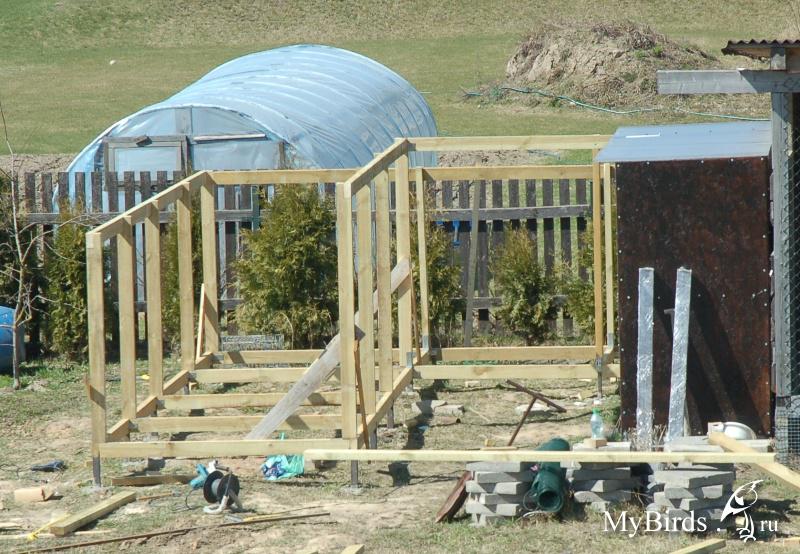 Чернов Сергей Опубликовано 29 декабря, 2012 #35 Опубликовано 29 декабря, 2012 Содержание птиц в вольере намного интересней, чем в клетках, но есть свои сложности и не решенные проблемы. sirinus, соглашусь с Вами, что вольерное содержание весьма интересно и имеет много плюсов по сравнению с клеточным. А какие сложности и проблемы вы имеете в виду? Поле просмотра фотографий появились вопросы. Стены вольеров, как мне показалось, покрыты плоским шифером и покрашены? Вообще, стены птичника из чего сделаны - деревянные, каменные? Есть какое-либо утепление? Если раньше в птичнике стояли клетки, то, видимо, настелен пол?Потолок, вижу, отделан тем же материалом, что и стены, и покрашен. Удачное решение, чтоб спрятать технические элементы кровли и избавиться от нежелательных контактов с внешним миром через неё. А кровля из какого материала? Как устроено освещение в птичнике? Естественное или есть искусственное? Уличный вольер интересно было бы посмотреть. Как он стыкуется с вольерами в птичнике? По фотографиям кажется, что в птичнике как минимум два вольера. У каждого свой выход в уличный? Делали какую-нибудь защиту от грызунов и хищников в уличном вольере? На фото видны гнездовой домик (где скворцы и дубонос) и гнездо (рядом с зарянкой). Размножаются? Близкое соседство других птиц не мешает? Мои вольеры возводятся методом долгостроя По некоторым причинам отказался от классического уличного вольера и сразу делал птичник (то есть отдельно стоящее помещение), чтоб разместить в нём вольеры.На этой фотографии строительство в самом разгаре. Выбрал её, так как здесь хорошо видно устройство крыши. В качестве кровельного материала использовал поликарбонат, чтобы максимально приблизить условия освещения к естественным. С этой же целью сделал большое окно на фасадной стороне птичника. Оно занимает весь проём, который на фото пока пустой. Птицы сейчас зимуют все вместе в одном вольере, остальные в процессе строительства. Вольеры будут маленькие, но и количество птиц в каждом из них будет небольшим.Параллельно с внутренним обустройством стараюсь работать над внешним видом птичника.