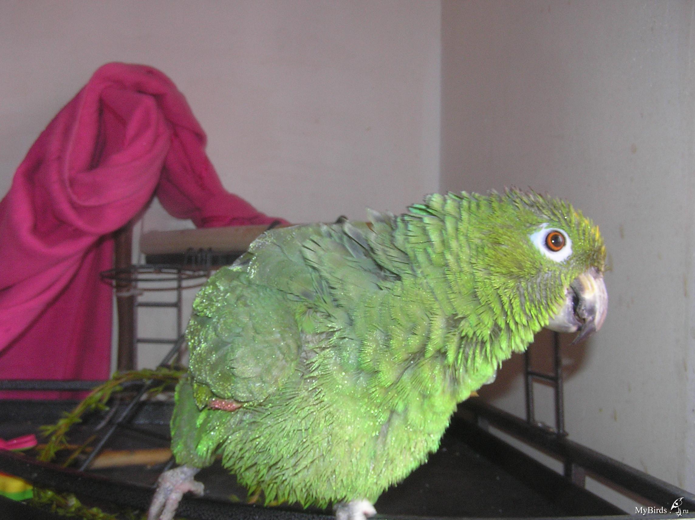 У Яшки перо сейчас очень красивое. Я ж их теперь на пару брызгаю ромашкой каждый день, вот мы и залоснились! ;)