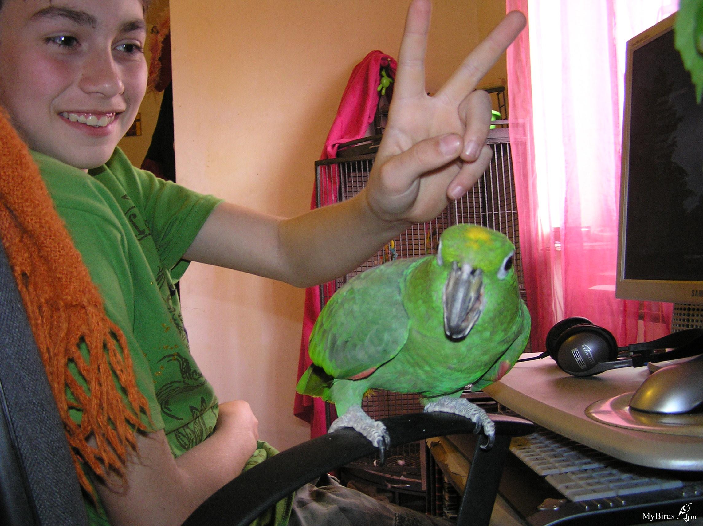 Яша клювом. а я типа руками. Вот че хошь с ним делай. а на руку идти не хочет, паршивец!!!