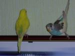 Maria24 Опубликовано 29 февраля, 2008 Автор #39 Опубликовано 29 февраля, 2008 Вчера мои проказники играли в водное поло Я им "в бассейн" кинула пластмассовую бигудю . Так они начали прыгать в воду и пытаться ее достать, а Яшка вообще начал прыгать на нее и кататься в воде. Зрелище было такое веселое Такие буси, были все мокрые! Затем под вечер я сидела за компом и тут слышу кто-то прыгнул на пол Это была Чика. Не прошло и минуты, как Яшка прыгнул вслед за ней. Я прекрасно знаю, что нельзя птиц приучать ходить по полу, но я не могла их согнать, ведь они исследуют квартиру, им интересно, что же там есть, если пройтись по полу Прыгали несколько раз за вечер и прогуливались, а мы с мужем сидели не шевелясь, чтобы не спугнуть их. И только слышно было как эти 4 лапы бегают: тык-тык-тык-тык-тык по паркету. Звук очень прикольный. А с таким деловым видом ходят, как будто хозяева они здесь