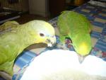 ira2008 Опубликовано 25 сентября, 2009 Автор #885 Опубликовано 25 сентября, 2009 Сури пытается наладить контакт с Лоркой. Сегодня прилетела на его клетку и пыталась накормить завтраком. Лорка не понимает её добрых намерений и сразу переходит к нападению .И я ещё под " горячую руку" попала.В отместку девушка вцепилась мне в палец.