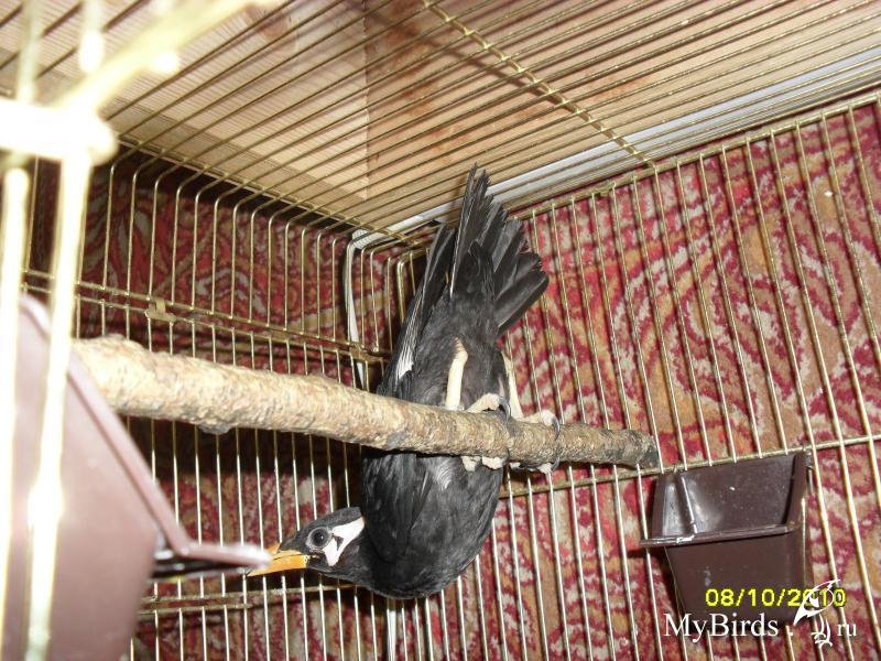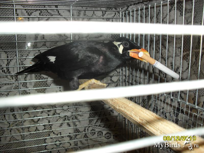 Серёга 33 Опубликовано 5 января, 2013 #270 Опубликовано 5 января, 2013 Здравствуйте!! Примите ещё одного майнофана в компанию)) Третий год держу пару майн(священных). Обе птицы с кольцами, обе получены в России(путём разведения и докармливания) соответственно обе ручные(в меру). Никогда не ставил цель научить их говорить, но как только им исполнился год(самке раньше, самцу позже) тут же как из рога изобилия-всё подряд(имена, фамилии, клички, телефоны и т.д. Да так чисто, что порой не понятно человек или птица)). В прошлом году начиная с апреля положила подряд две кладки по три яйца(синии в тёмную крапину)Все шесть яиц вытащил и разбил самец((((. Я сделал такие выводы: отсаживать после спаривания самцов нельзя(они у майн оплодотворяют каждое яйцо) Попробую сделать имитацию яиц из гипса и заменить, а яйца в инкубатор(благо есть корейский, полный автомат) здесь Маруся ещё в птенцовом (скромном)наряде. Ещё мои любимые птички))