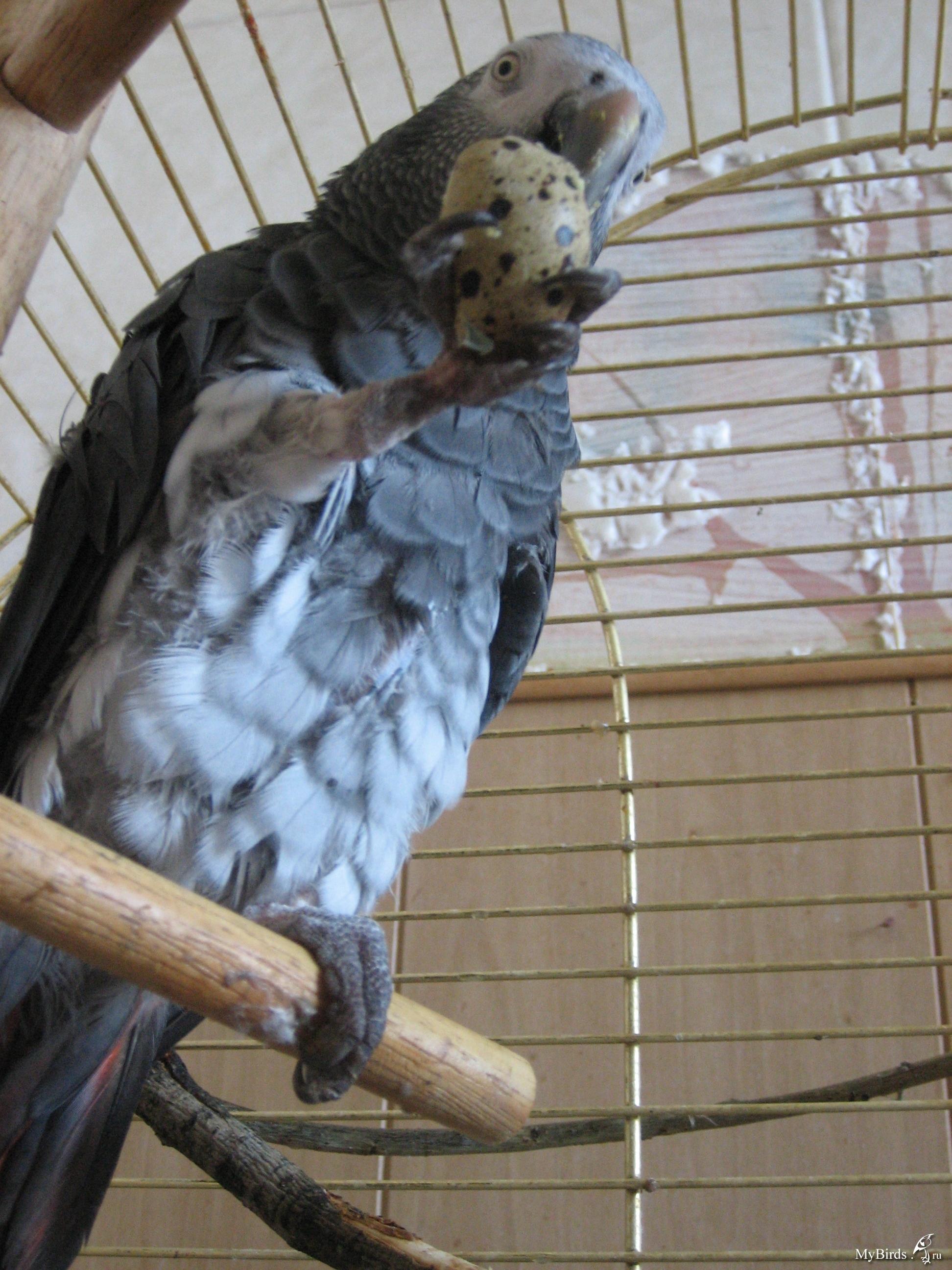 BaronAn Опубликовано 22 июня, 2008 Автор #110 Опубликовано 22 июня, 2008 В нашем случае ситуация не такая уж критичная. Кеша в семью, как я поняла не вернется. Времени нет у хозяина совсем. У меня практически такой же режим жизни. Поругаться из-за попугая мы не можем Отношения дружеские. Никого забирать я не собираюсь. Это чувствуется. А если бы захотела, уверена, птицу мне бы подарили до дома со всеми причиндалами довезли.Я ни разу не писала, что Кешу надо спасать. Конечно, в семье намного лучше, чем в офисе. Но ситуация не опасна для жизни. Хочу фотографию продемонстрировать. Сегодня принесла вареное перепелиное яичко. Когда дала целое, Кеша клювом по нему поводил и отошел. Я даже подумала, что как многие фрукты и овощи отберет и выкинет. Но все же разрезала яичко на половинки и предложила. Кеше очень понравилось. Яичко было полностью съедено.