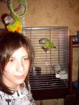 АЛИСЕНОК Опубликовано 1 октября, 2010 #224 Опубликовано 1 октября, 2010 А вот и мы! Филя!Еще ФилюшаЕваВместе!Немного расскажу о нас:Гуляют по очереди,т.к.Ева ревнивица еще та.Если кто-то один гуляет,клетка другого накрывается.Недавно Филька как обычно гулял,правда он предпочитает всю прогулку сидеть у меня на плече и курлыкать на ушко,Ева более самостоятельная.Мне надо было выйти из комнаты на пару минут,Филю посадила на стенд и ушла.Небольшое добавление,у Евы одна жердочка не подпилена по размеру и на некоторую длину выходит из клетки.Так вот,прихожу,накидка висит на этом куске жердочки,а там сидит Филя!Вот так это выглядело:Я поспешила снять Филю (т.к.боюсь что они покалечат друг друга),стала подходить и звать его по имени,спокойным,на мой взгляд,тоном.Но Ева видно почувствовала моё волнение и страх,ну и бросилась к Фильке,они немного подрались клювами,но ничего страшного не случилось. В другой раз на прогулке Филя сидел у меня на плече,я сидела за компьютером.Потом он слетел с плеча на стенд,это я видела,через некоторое время смотрю,а он уже на этом куске жердочки сидит(Ева была не накрыта).Ева тем временем занималась своими делами,ела,скакала по клетке.Я сделала вид,что всего этого не вижу.Через некоторое время встала,походила туда-сюда,молча.Попугаи были спокойны.Потом Ева села поближе к Филе и они друг на друга глазели,рассматривали.Я села за комп,сама краем глаза наблюдала за ними,а потом Филя слетел ко мне на плечо.Выше фото-Вместе,это как раз когда я вела себя спокойно и птицы тоже были спокойныДля меня,то что они сидели рядом,это прогресс!Кажется я начинаю что-то понимать
