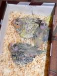 Sendy Опубликовано 3 мая, 2009 #14 Опубликовано 3 мая, 2009 Irin_as, поздравляю с первыми птенчиками !!! Я про развитие птенцов волнушек, к сожалению, не знаю и информацию по ним не искала. А чтобы птенчикам всего что необходимо хватало, нужно правильно кормить родителей . Тут на форуме можно много темок найти, я думаю, на счет кормления волнистых в гнездовой период. Я с вами согласна на счет того что первые птенчики - это очень волнительно. У меня тоже первые и тоже кажется все время что что-то с ними не так . Пока не покинут гнездо и не полетят, тревога не исчезнет. А фот фотки моих птенчиков. Они сейчас на стадии ежиков, старшему 20 дней, младший на пару дней младьше. Мне кажется что старший будет как мама, жемчужная корица. Лапки остаются розовыми(может говорить о том что он-корица), ну а жемчуженки уже явно видны. Младший малыш серенький . Лапки у него уже очень хорошо окрасились, потемнели. Вот птенчики показали что же скрывали в своем генотипе их родители. Папа Тиша внешне белолицый, оказывается, является носителем корицы и жемчужности (cinnamon,opaline). Жемчужная корица(думаю что это оно ).Серый.А это мы так играем-балуемся друг с другом .