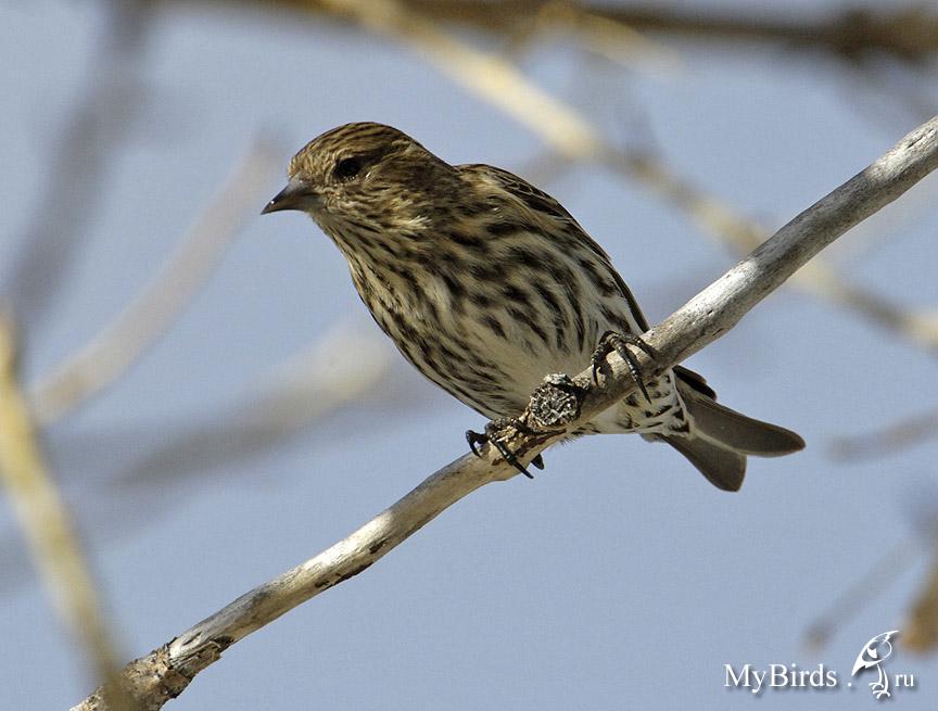 Grosbeak Опубликовано 13 августа, 2008 #22 Опубликовано 13 августа, 2008 Близкий нашему чижу – сосновый чиж Spinus pinus. Это североамериканский вид, предпочитающий хвойные леса. Он как бы заменяет нашего чижа в Сев. Америке, которого там нет. В сравнении с нашим - окрашен более скромно, но довольно контрастно, хорошо выражены пестрины по всему оперению (особенно на голове), меньше желтизны и имеет более тонкий клюв. У самцов есть желтоватый оттенок и немного похожи на самок наших чижей. В песне есть характерное жужжащее колено «зре-ее», аналогичное хрипловатому колену «ке-е» нашего, но звучащему более эффектно – низко и протяжно. Очень похоже на жужжащее колено нашей зеленушки, но более красивее. Образ жизни и общая схема гнездования – как у нашего чижа. Из-за скромной окраски, в домашних условиях видимо – вообще не встречается (по крайней мере – в России) Фото из сети.