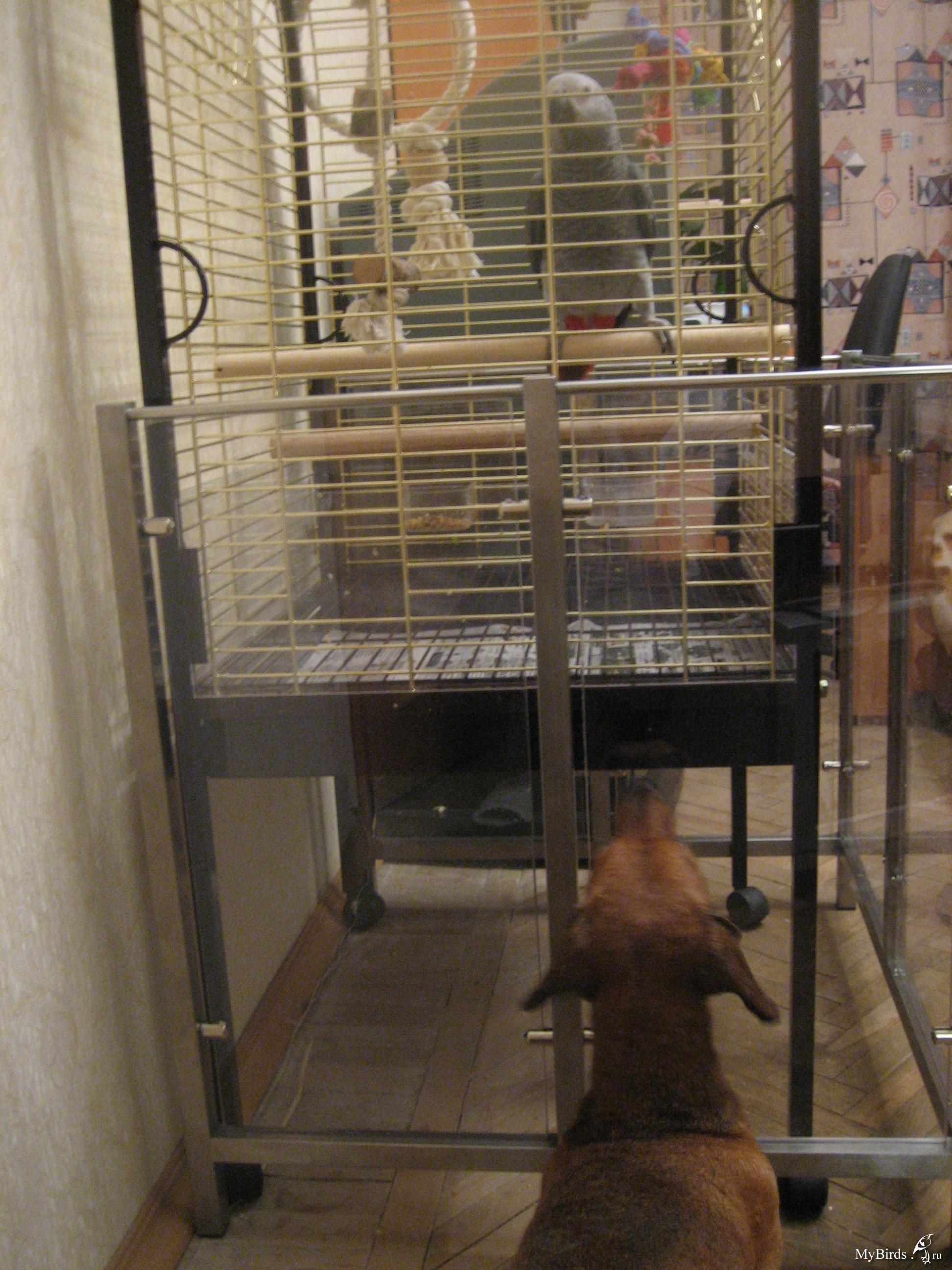 BaronAn Опубликовано 27 августа, 2008 Автор #157 Опубликовано 27 августа, 2008 Сутки думала, что делать. Может и придумала. Кухня чем хороша? Мисочка со Скифчикиной едой, и водичка там есть. Не хватает только диванчика – организуем. Пришла с работы, по дороге купила каждому в зубы по новой игрушке. Перенесла Скифино место на кухню. И когда выпускала Рикки, Скифи сидел на кухне с новой игрушкой и полными мисками вкусняшек. А я 5 мин со Скиф, 15 с Рикки, потом 15 на руках со Скифи в комнате, где гуляет Рикки. Вот так и носилась. Плохо только, что Рикки ну ни в какую идти в клеточку не хотел. Пол часа уговаривала. И потом уже твердо говорила: «Рикки идет в клеточку». Но Рикки не идет в клеточку. Ни бананы, ни семечки не помогли. Как это Вы пишите, что если птица себя плохо ведет, например, кусает – Вы ее сразу в клетку. Как это у Вас получается.Я и на палочку его пару раз смогла посадить, но от тут же просек, куда эта палочка направляется – и деру. После получасового «Рикки идет в клеточку». Взяла в охапку и под недовольный крик (не сильный) – в клетку. Даже покушался на укус. Но не укусил. Сразу поощрила, дала семечек. И уже голодный к тому времени Рикки (специально по приходу домой вечернею порции не дала) набросился на зернышки. Чего спрашивается сам не спустился? Далее, сделала невозможное. Огромное Скифино кресло, которое по всем законам математики не могло пролезть в дверные проемы, оттащила на кухню. И вышло очень хорошо. Напротив телевизора огромное кресло Самой понравилась. Посмотрела со Скифи там кино. Так что думаю, в следующий раз, когда выпущу Рикки, Скифи погавкает-погавкает, да и уснет в своем кресле. А еще он у меня в окно любит смотреть. А кресло я специально около окна поставила. Так что, может это и любимое его место станет