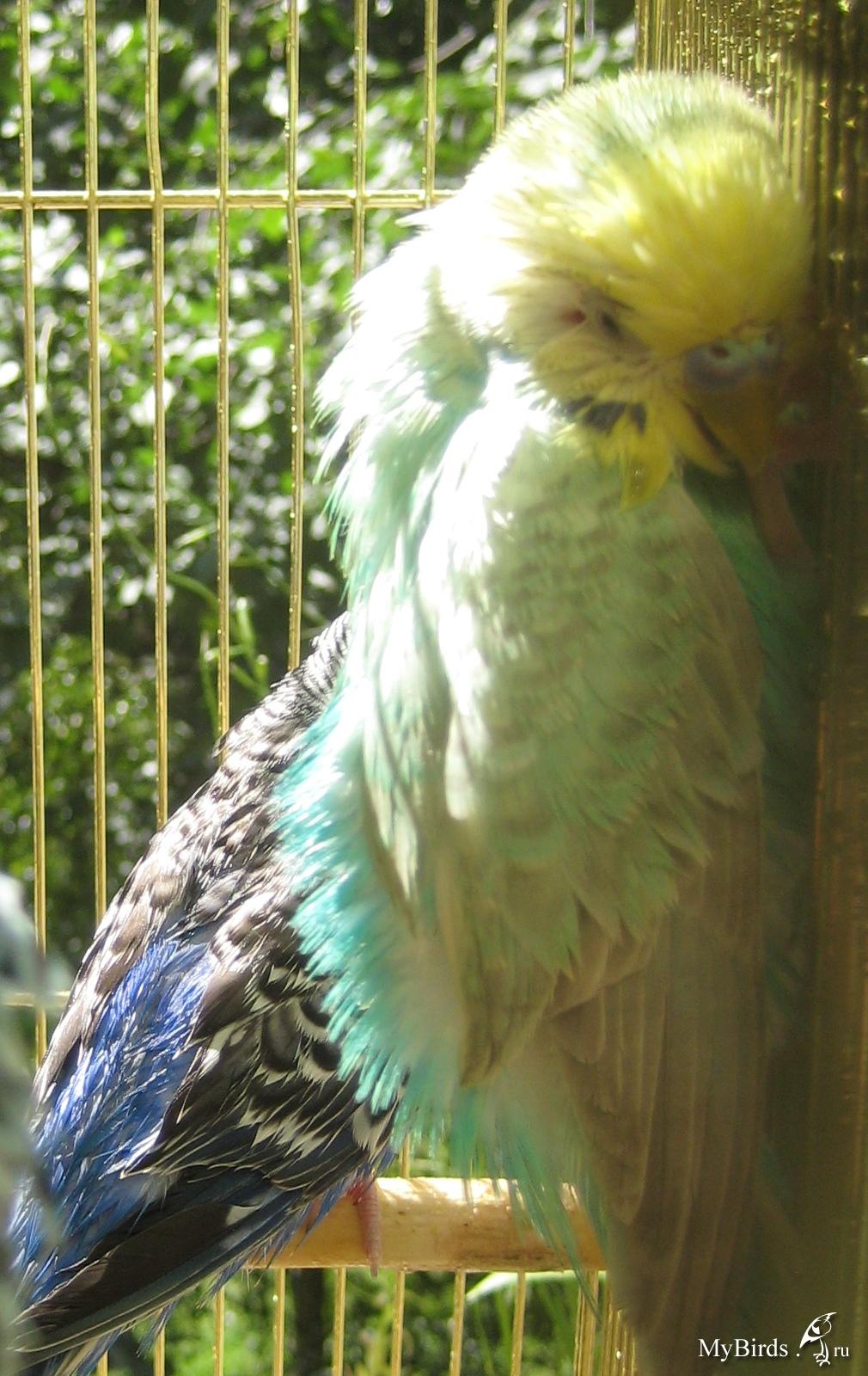 ПОльга Опубликовано 18 августа, 2009 Автор #445 Опубликовано 18 августа, 2009 (изменено) Пока сидит притихший на верхней жердочке, слушает внимательно нас с кошкой. 662443[/snapback] У Вас кошка разговорчивая? Научит его мяукать! Сегодня был банный день это подрощенные самки, были вроде обе зарезервированы, но о них не вспоминают, поэтому - одну точно снимаю с брони... со второй пока подожду до сентября... Снежинка опять была замечена в компании чешонка от 18ти до 25ти дней им помните, были такие птенчики?это была первая кладка молодых родителей - кобальтовой опалинки Флэшки и осветлённого серо-зелёного Якрика... и во вторую кладку мы все ждали нечто подобное... а они выдали птенчиков совершенно других окрасов: оливкового, серо-зелёных и бирюзового... пола пока среднего Изменено 18 августа, 2009 пользователем ПОльга