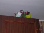 cветик Опубликовано 11 сентября, 2008 Автор #3 Опубликовано 11 сентября, 2008 Гоше примерно 3 года.Даше около года(мне так сказали при покупке).Гоша жил один и все было в порядке кроме маленькой мелочи - он ерзал по всему что движется.Эта мелочь и сподвигла меня на покупку подруги.Преобрела Дашу 6 сентября.Сутки сидела в садке.Вечером выпустила летать обоих и она сама залезла к Гоше в клетку, там и осталась.Но проблема в том,что Гоша(редиска) ее клюет.Она конечно защищается.В клетке они постоянно деруться,а когда летают,то все мирно.
