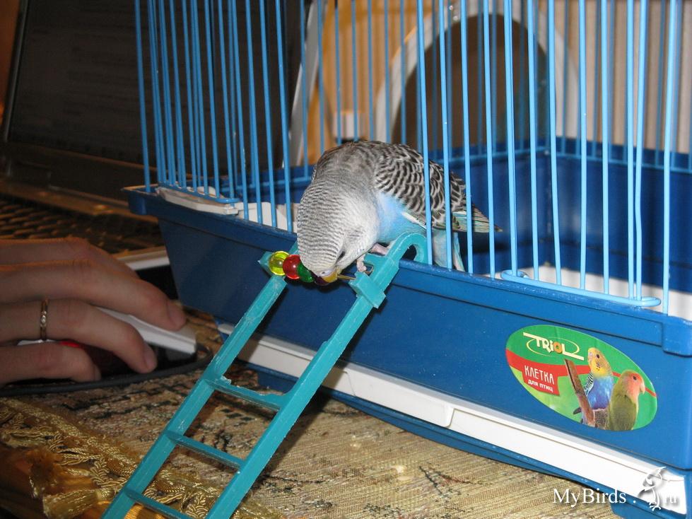 Tala Опубликовано 2 августа, 2009 Автор #565 Опубликовано 2 августа, 2009 Tala, они все малыши такие, кусючие, наверное. Не-а! не все! Прошка в жизни своей не кусался! Даже Даря не кусалась в детстве: 2-3 раза всего, когда я её в руки брала для лечения и больше не кусала до полутора лет, до последнего то бишь времени. Шуник - этот да, этот в игре-азарте, но никогда не нападал сам. А Сёмка - этот именно нападает! Мимо него иной раз проношу руку или меняю в клетке что-нить - может кинуться как бульдожонок ...правда надо отдать ему должное - не так больно (хотя мужа цапал сильно). Татьян, на Сёмку тоже хочется посмотреть! (или я не внимательно просмотрела темку?) Ольга, всё правильно - я действительно ещё не выкладывала фото Сёмы, суеверие на меня напало: "шифровалась" я до конца карантина Знакомьтесь - Сёма! : - очень любит зеркало -первые шаги по дому. Правда же, очень напоминает совёнка? Но сейчас у него уже обозначаются щёчки и он начинает выглядеть как вполне себе попугайчик - любимый "игровой стенд" (там столько интересных висюлек и блестяшек!) - а вот так мы возвращаемся домой - на голове хозяев - очень любит перебирать цветные шарики на этой лесенке