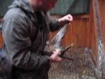 Patron Опубликовано 4 ноября, 2008 #1 Опубликовано 4 ноября, 2008 (изменено) Всетаки книжки дают только начальную информацию по обучению хищных птиц и когда дело доходит до практики возникают кучи вопросов. Вот и мое время пришло вначале вышел на работника местного питомника "Холзан" - Бахтерева Алексея после знакомства и увиденного своими глазами подумая насчет насчет таво, стоит ли заводить - решился.Вчера приобрел самца балобана. Только он оказался жирноватым вес около 930 г. хотя киль относительно прощупывался по бокам было нормально жирка, хотя с момента поимки за все последующее время моего присутствия в питомнике он погадил только один раз. В клобуке был абсолютно спокоен правда очень редко всетаки пытался почесать или порвать путы, вечером пытались снять клобук после чего птиц рвался как ненормальный из-за большого веса, да и обучать толку в тот момент не было. Пришлось иногда тоскал на перчатке чтоб привыкал както к ней в движении, сидел идеально даже не разворачивался причем если неправильно посадил легко можно было двигать. Даже если гладить не подавал никаких признаков раздражения хотя если дотронуться рядом с клювом он немного в сторону голову повернет, учащенное дыхание после поимки замечено не было хотя немного пугался если оставить на присаде а потом потревожить. Пока оставил птицу у Алексея скинуть лишний вес чтоб начать заниматься, в субботу опять поеду с ночевой а на следующий день заберу домой.Знающие люди подскажите ченибудь из вышеизложенного, лишним не будет))) зы: на первой фотке я и мой самец(пока имя не придумал), далее Алесей Изменено 4 ноября, 2008 пользователем Patron