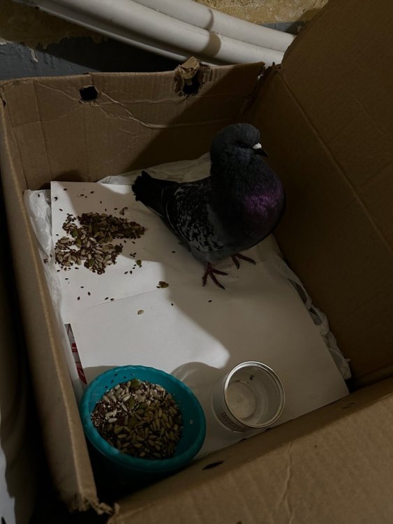 radi_lubvi Опубликовано 27 ноября, 2023 #106 Опубликовано 27 ноября, 2023 Здравствуйте!! Простите, пожалуйста, если не в той ветке. Но срочно нужна помощь. Подскажите 🙏🏻🙏🏻🙏🏻 Санкт-Петербург, подобрали 26.11.23 на улице голубя - он плохо летал и бросился нам под колеса на дороге. Думали, наелся рябины, подержим в коробке, очухается. Посадили в коробку, он стоит все время, иногда переминается на лапах, вытащила из коробки-дошел до угла, встал. Прочитала, что надо кормить насильно. Взяла в руки, попыталась нащупать зоб - он блеванул, содержимое пахло неприятно и было светло-коричневым, я подумала, что это точно рябина и поднесла воду, он попил. Затем несколько раз поила его, в коробке белые экскременты (я так понимаю, так он пописал). Самостоятельно не ест (смесь гречки, разных семян), попыталась накормить-взяла на коленки, придала немного, раскрыла клюв, засунула гречу - выплюнул, и так несколько раз (то же с семечкой). Блевал водой еще пару раз, когда брала на руки, содержимое светлое, но также с неприятным запахом. Что с ним делать(( Позвонила в «Петербургский Реабилитационный центр диких птиц им А.И. Куинджи», но там прием 1000+ рублей и надо еще на анализ сдать 7000 рублей, чтобы птицу оставить там … подскажите что делать