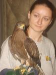 TAZY Опубликовано 6 ноября, 2008 #1 Опубликовано 6 ноября, 2008 Ну вот и добралась до форума, чтобы выложить долгожданную (некоторыми ) темку об осоеде Без Имени, а дома просто Птича )) Попал птыц ко мне совсем неожиданно. Позвонила однажды мне Zorg с сообщением, что есть птица, надо вывозить от туда, где она сейчас находится, т.к. пица не в очень хороших условиях живет, да и не шибко там нужна. Я не раздумывая согласилась (когда такое "сокрвище" еще свалится на голову ), но согласилась взять на передержку...Птиц очень потрепан, ушедши в линьку, что можно видеть на фото. У меня дома было всякое, но хища в виде домаенего любимого попугайчика - никогда! Это добродушное создание настолько безобидно и общительно, что для человека, имеющего хорошо развитое чувство юмора, это кладезь отличного настроения!Любитель меда (аж до трясучки) и мешанки с ним же, но превереда в "дичи". Он у меня сидит уже две недели, за кои был приучен к мешанке. Первые три-четыре дня птиц отказывался от еды в принципе! Потом начал потихоньку поедать разделанных на мелкие кусочки перепелей, но отказываясь от кусочков с косточками либо перьями! Отказывался и от мешанки, которую ему приходилось пихать в "морду" ))Когда я просыпалась, то это голодное существо встречал меня влюбленно-голодным взглядом, расказывая, какой он несчастный и надо его срочно пожалеть, а так же в срочном порядке накормить медом (в который я уже начинала подмешивать ингридиенты мешанки). Так тихй мы начал есть! Ура. Но теперь мы не едим ничего "мясного" Даже выковыриваем из мешанки кусочки. А мешанку, доведенную до сплошной массы, он не ест!Вот такой вот превереда мну досталси На фото мы