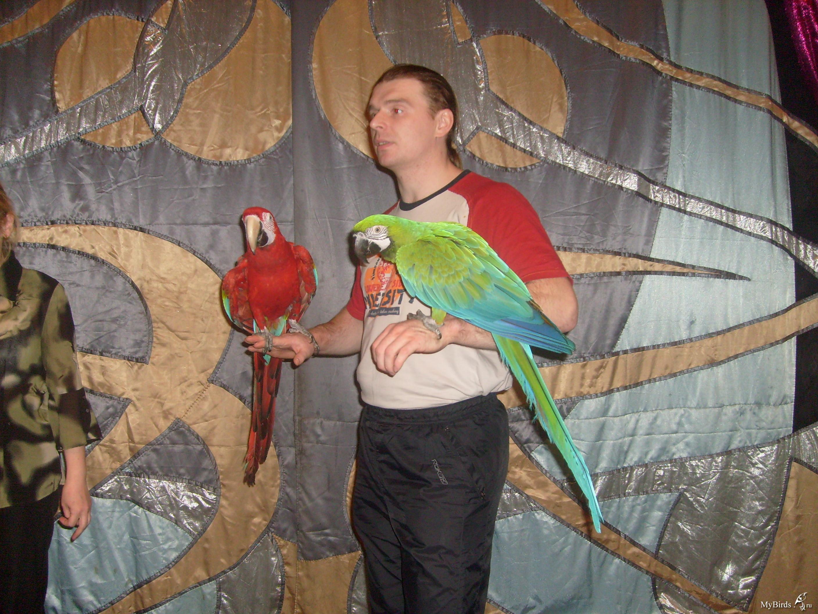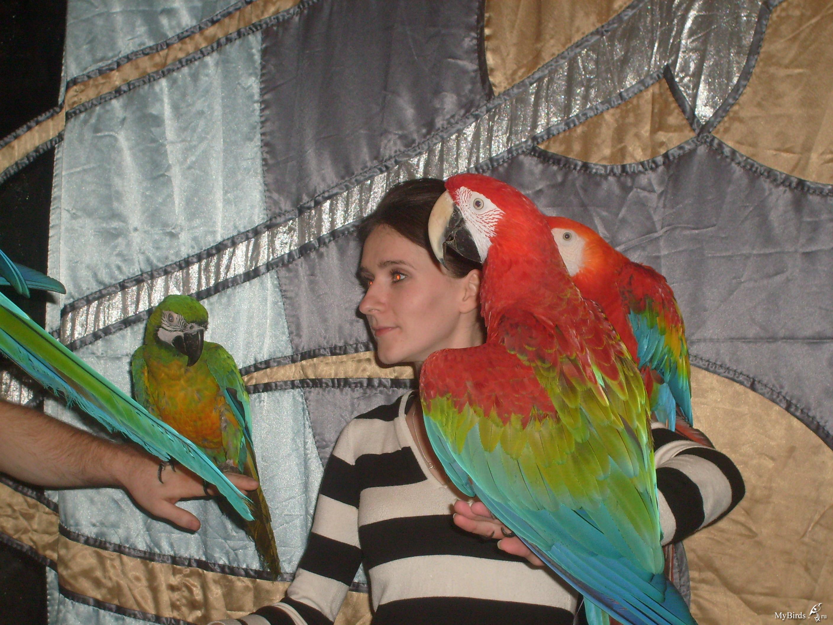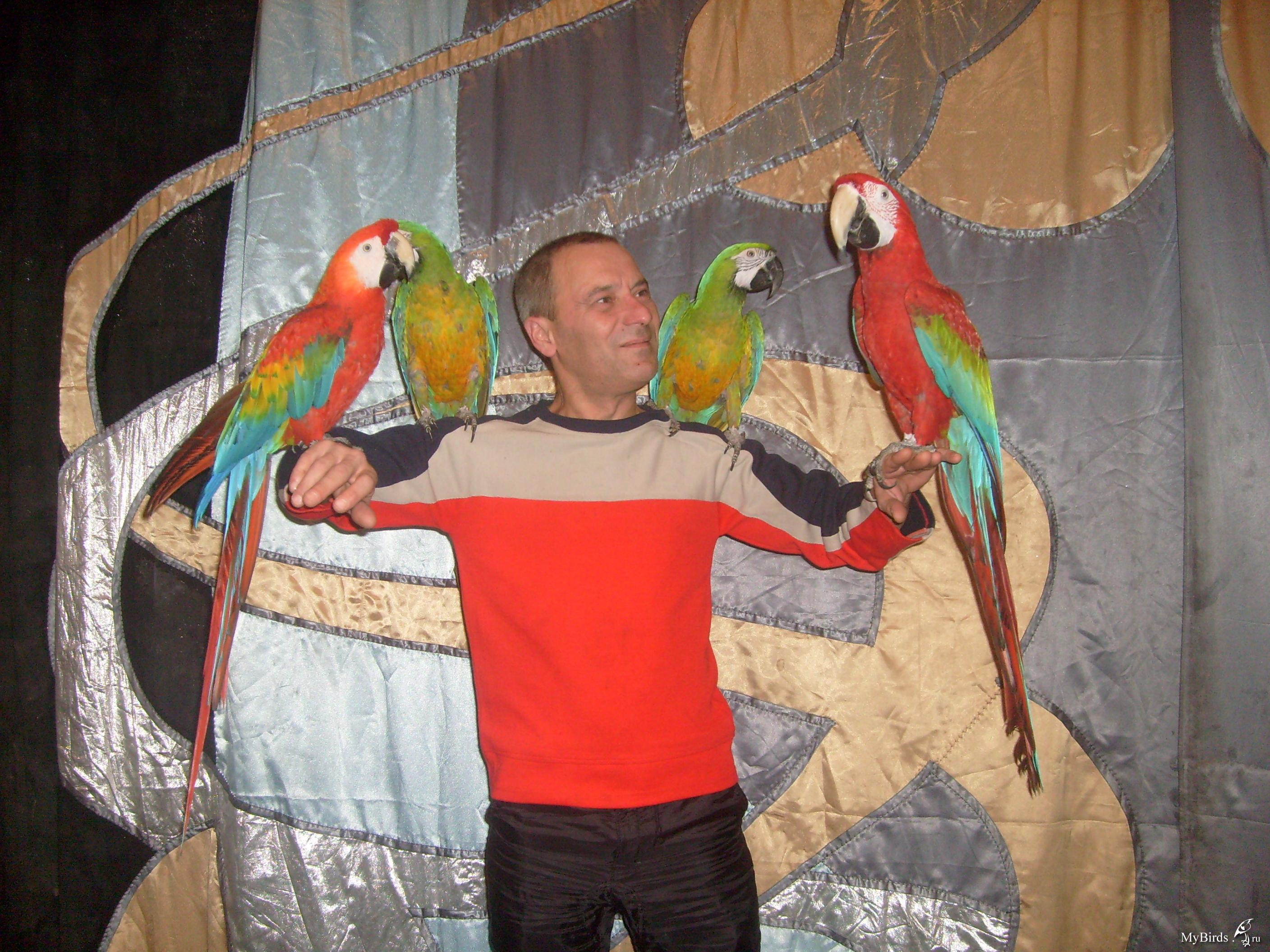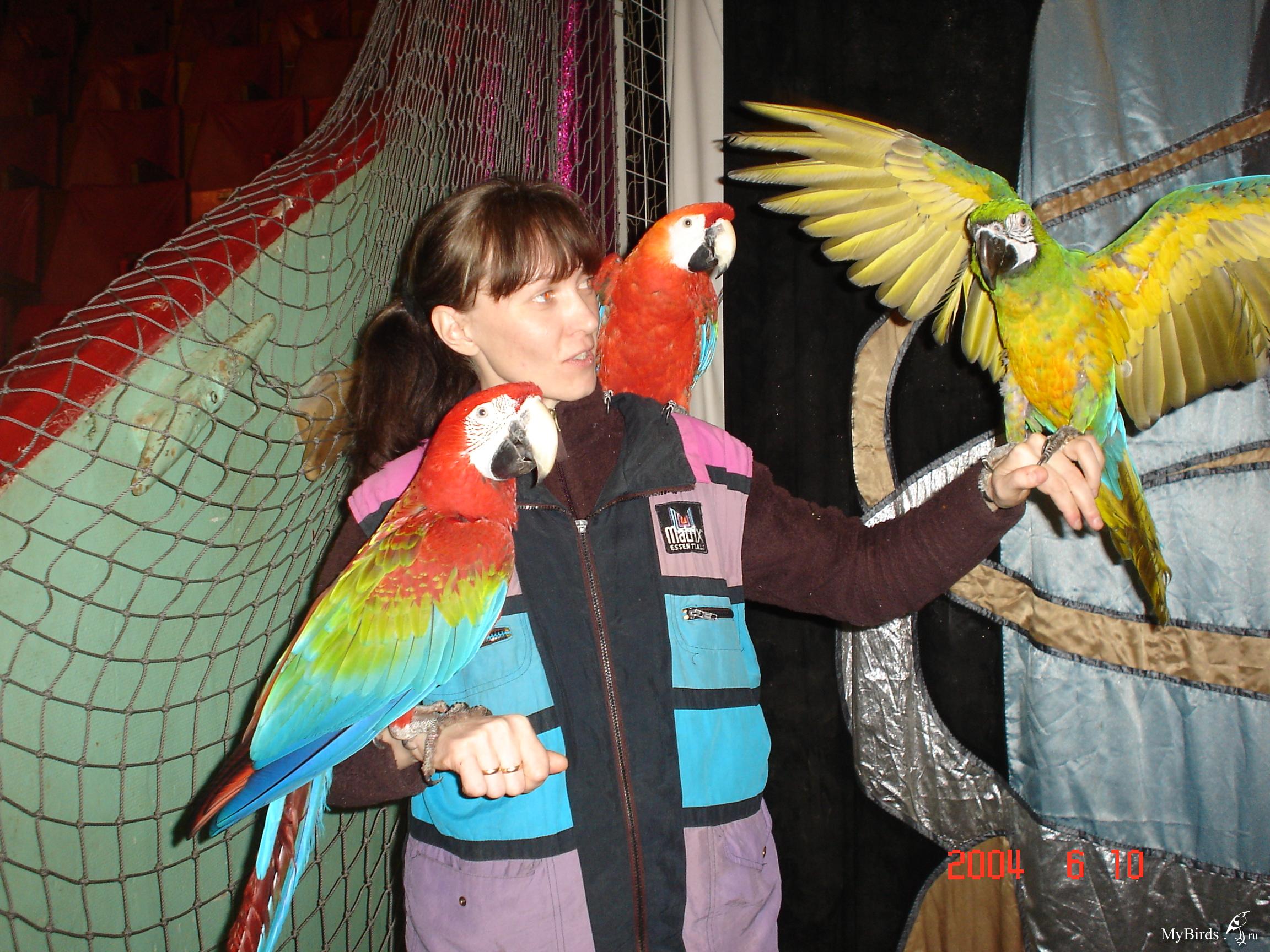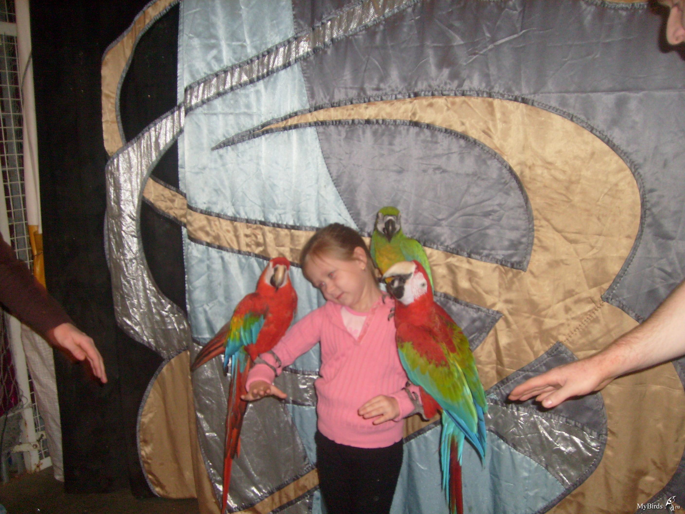 Pipka Опубликовано 3 декабря, 2008 #6 Опубликовано 3 декабря, 2008 Ну и я добавлю немного своих фоток. А заодно допишу, что были мы сегодня в гостях у замечательных и удивительных дрессировщиков Ольги и Олега Хотим. И ужас как было здорово!!! ОльгаОлегмы - Наташа, Натулька, Наташин муж, Наташина дочка Сашенька, Тума (Татьяна) Летящая по команде ара Олег и Оля работают с зеленокрыликами На спинкетрюк называемый "головку" - ары падают назад и просовывают головку под жердочку - обалденно в воспроизведении, на фотик всю прелесть этого трюка не заснять - просто отпад!!!Головка несчастного громадины зеленокрыла никак не хочет пролезать под жердочку - слишком громадная!!!Но орех то хоццца!!! Пропихнем!А пока вы там развлекаетесь - мы подеремся и побратаемся (две сестрички гибридки солдат/синежелт) Пошла курить... Продолжение следует.. Настя-я-я-я-1!! Жаль что тебя не было! Вот это люди! Вот это я понимаю! Не то что мы с тобой, сюсюкалки сраные. Ар строят тока вьет. Воще я в шоке. Вот как надо с птицами работать - и птице развлечение и хозяевам удовольствие. Эх... мою Пипуху там бы инфаркт хватил в два счета