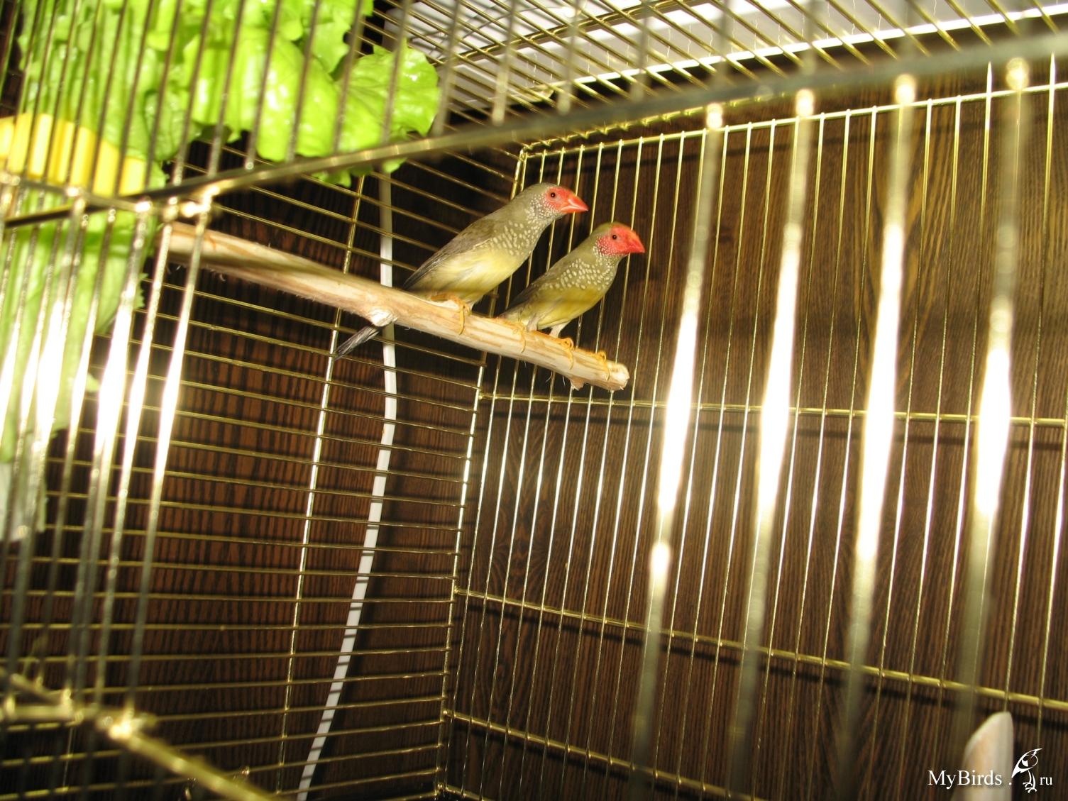 Здесь пишут, что Тростниковые астрильды - любопытные и смелые птички. Мои не совсем подтверждают эту теорию. :angel: Они скорее любопытные (как, наверное, все без исключения птицы), но робкие и осторожные. Например, только через 20 дней после приобретения самец отважился самостоятельно опуститься на пол клетки. Может, конечно, он делал это днём, когда все были на работе. Но я это увидела и многократно только через 20 дней после его покупки. А самка, балансируя на нижней жердочке и от желания и любопытства заваливаясь вперёд, так и не слетела вниз ни разу. Каждый раз, когда самец прыгает вниз, ходит там, что-то клюёт, регулярно распевает песню открывателя и завоевателя новой территории :crazy: , самка вся в нетерпении балансирует на жердочке.