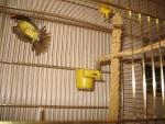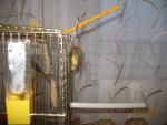 Теперь налетались и дальше клетки не хотят. На жердочку внешнюю выпрыгнет самец и обратно. Самка то, если бы я сама не подстегнула к выходу и не вылетела бы.