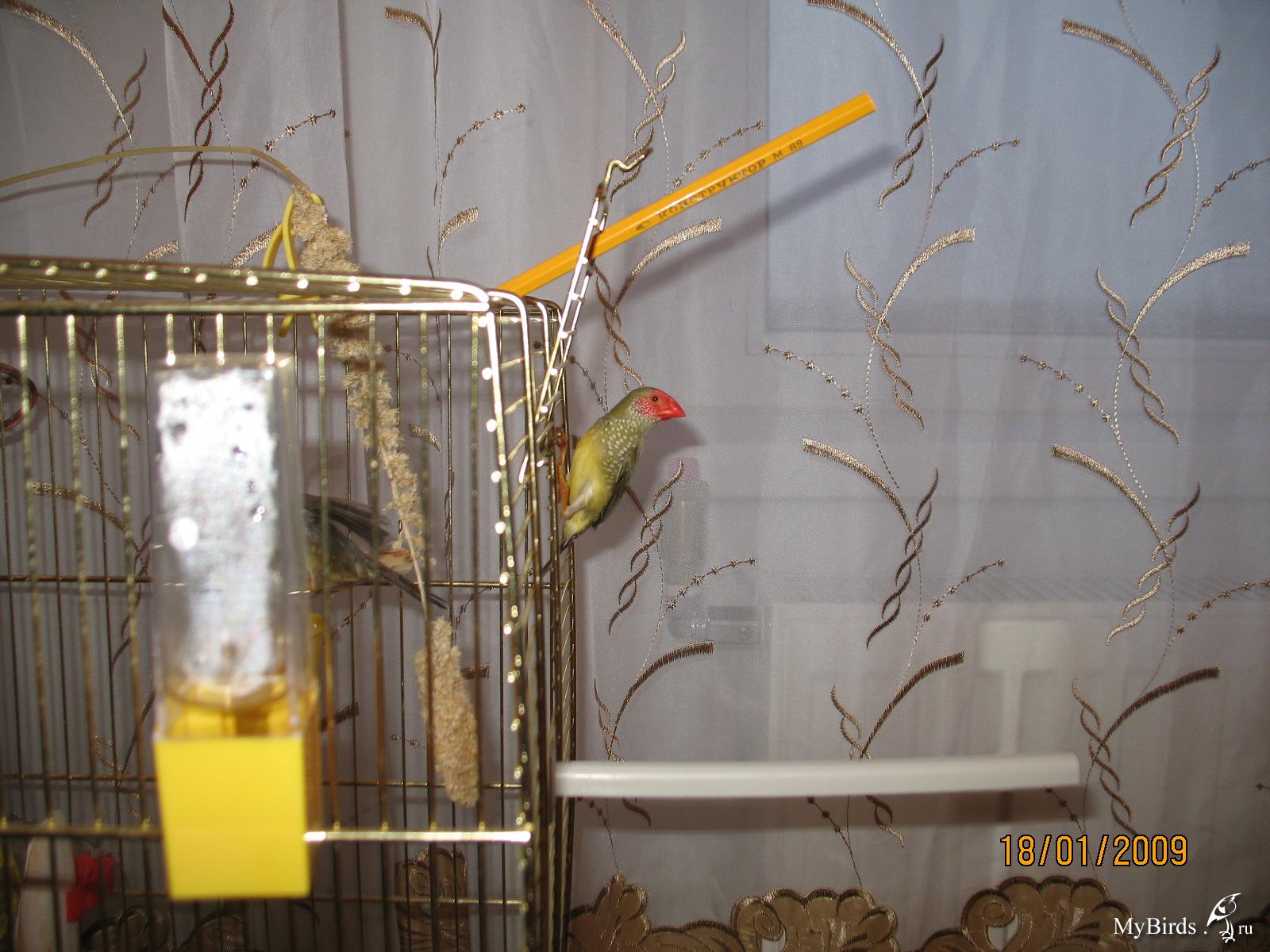 Клетку для Шуры и все необходимое, включая корм, продавала мне в зоомагазине женщина, сама занимающаяся амадинами. Посоветовала купить качели для увеселения птицы, хотя размер клетки сама видела при продаже. И абразивные палочки на жердочки, чтобы клюв и ногти стачивались. Качели убрала по совету здешних форумчан, хотя и сама сразу поняла, что они мешают пролёту. А абразивные палочки запретила продавец Шуры, сказав: натуральное дерево и никаких! Пришлось их выбросить. :)