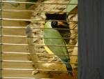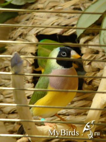 Monhrisa Опубликовано 6 июля, 2009 Автор #118 Опубликовано 6 июля, 2009 А я собираюсь в отпуск. Вчера рассаживала всех кто дерётся,по возможности конечно. Шнырёк с Маринкой в одиночках клетки стенками соприкасаются, одна жёрдочка для влюблённых сердец Шнырь заметно приуныл,ничего полетал и хватит пока,а то не знаю как всё будет без меня. Гульдяши общаются со мною знаками, самец явно показывал всем телом,что вход в гнездо должен быть сбоку! Даже копать стал боковую стенку. Повернула,птички радостно одобрили. Самец залазит в гнездо и свирчит там,зовёт самочку,строит внутри,самочка подлетает и смотрит как там?Потом залазит и слышно как гульд радостно поёт внутри, не знаю чего у них там,вход теперь сбоку,невидать.Потом самец вылетает, а самочка сидит какое то время, потом тоже вылетает.Так проходит у них день.На фото гнездо ещё не перевёрнуто,видно,как самец(красноголовый) что то копается сбоку. Рисовки стали больше проводить времени в гнезде, сидят часто оба там. А яиц всё нет.