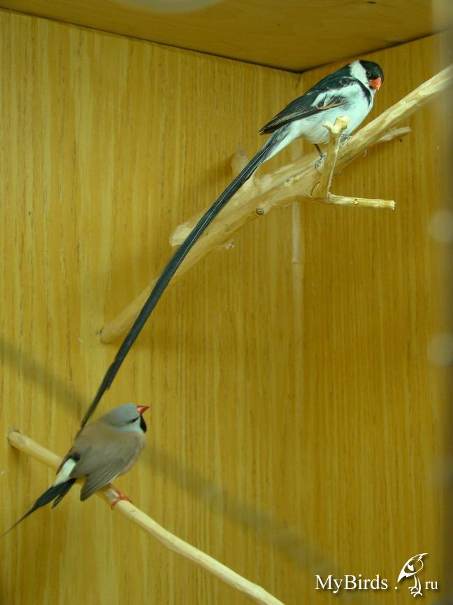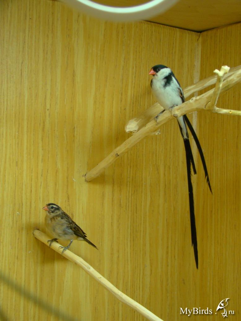 Monhrisa Опубликовано 4 июля, 2009 Автор #109 Опубликовано 4 июля, 2009 1) Попугайные амадины сверчат наподобие синиц:"цвирь-цвирь".Самец издаёт короткую трельку из тех же звуков,ухаживание сопровождается гонянием самки по клетке и выдиранием перьев из шкирки самочки, прошлая самка-сестра Шныря, вечно была слегка лысовата в области шеи. От людей слышала, что это признак хорошей самки.Попугайные где то около года у нас были не очень красивые.приобрели шикарный вид в 1,5 года, сейчас Шнырьку около 2х лет. Из моих птиц это самые подвижные и конфликтные, им нужен простор для полётов.2) Кормушек в большом вольере 3, 2 большие лоханки на полу,чтобы не мелочиться, одна для малышей и недотёп повыше, прикреплена к прутьям, поилки,они же купалки 2-3 те же лоханки пластиковые,(покупаю их в уценённом виде по причине отсутствия крышек, есть такие весчи у нас в "Домашнем складе".Получается даже дешевле мыльницы.) воду меняю по мере загрязнения 1-2 раза в день. В таком режиме птицы смотрят как только урвать всё лучшее,дух соревнования иногда очень помогает преодолевать пищевые предрассудки птиц. в общаке почти все едят всё.3) мешанка обычная: яйцо, морковь(зелень)пророщенный корм для волнистиков"Вака"(самый дешёвый)Заливаю на ночь водой,откидываю на сито, прикрываю тряпочкой на 2й день всё проростает. Промываю под краном и даю.4)Вопрос о мешках с просом встал ребром, до этого мешала всякие корма: Падован (с гульдиком), Падован Натуралмикс в пакетах, Ваку,канареечник. Зебрам побольше Ваки, Гульдам- Падована.Сейчас привезли из Москвы ведро могар-чумизы-ж.проса-канареечника. Но надолго не хватит. Будем затариватся вагонами Каждый день после уборки шелухи набирается где то на баночку в 500гр.