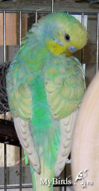 Мокка Опубликовано 10 апреля, 2009 #34 Опубликовано 10 апреля, 2009 Подскажите пожалуйста!!!Вот мой будующий птиц, вроде с первого взгляда не радужный , но если посмотреть выше перечисленные признаки, то получается что радужный или нет? Ну вообще этот окрас называется голубой пестрый желтолицый второго типа. Мне кажется, у радужных( хотя и радужный наверное можно по научному совершенно по другому обозвать) должна присутствовать волнистость еще. У этого волнистости нет и не будет, на голове присутствуют остатки волнушек, причем опалиновости. И все таки радужный должен быть ярче как мне кажется. Фиалка, Светлокрылый - да.Желтолицый - да.Опалин - нет.Синий ряд - да. Как раз таки у этой птицы остатки опалинового рисунка присутствуют. Но все же он не радужный..