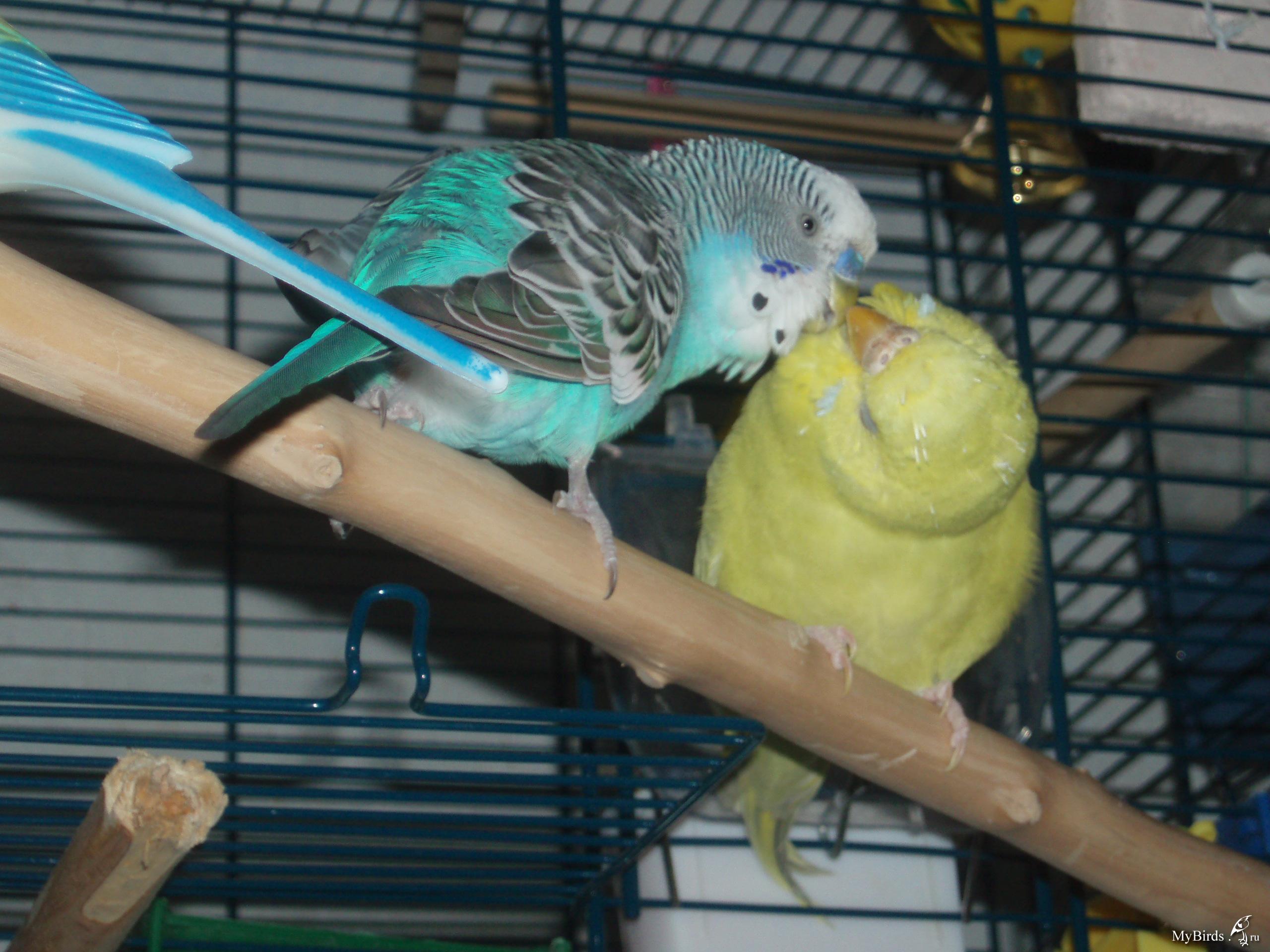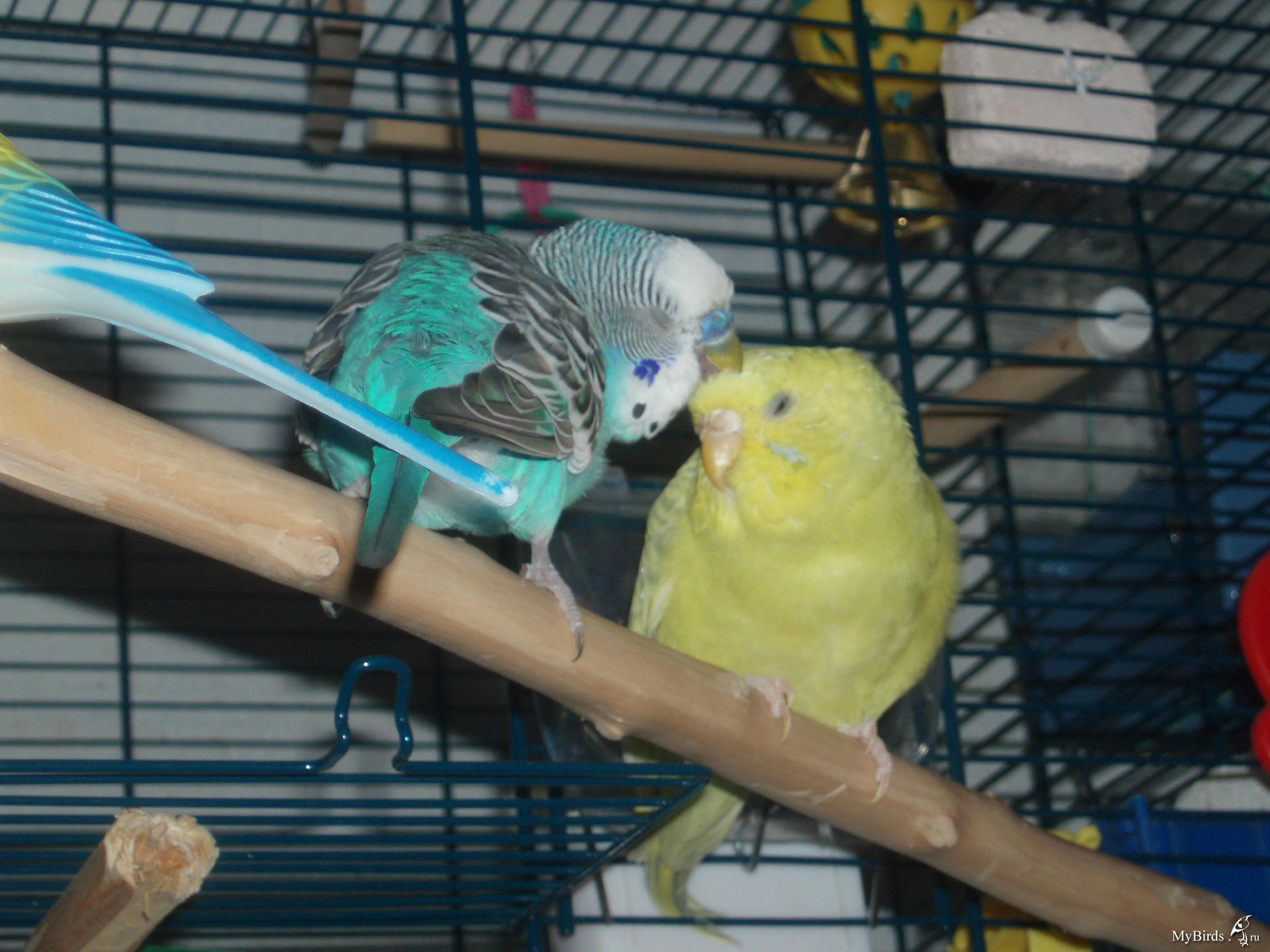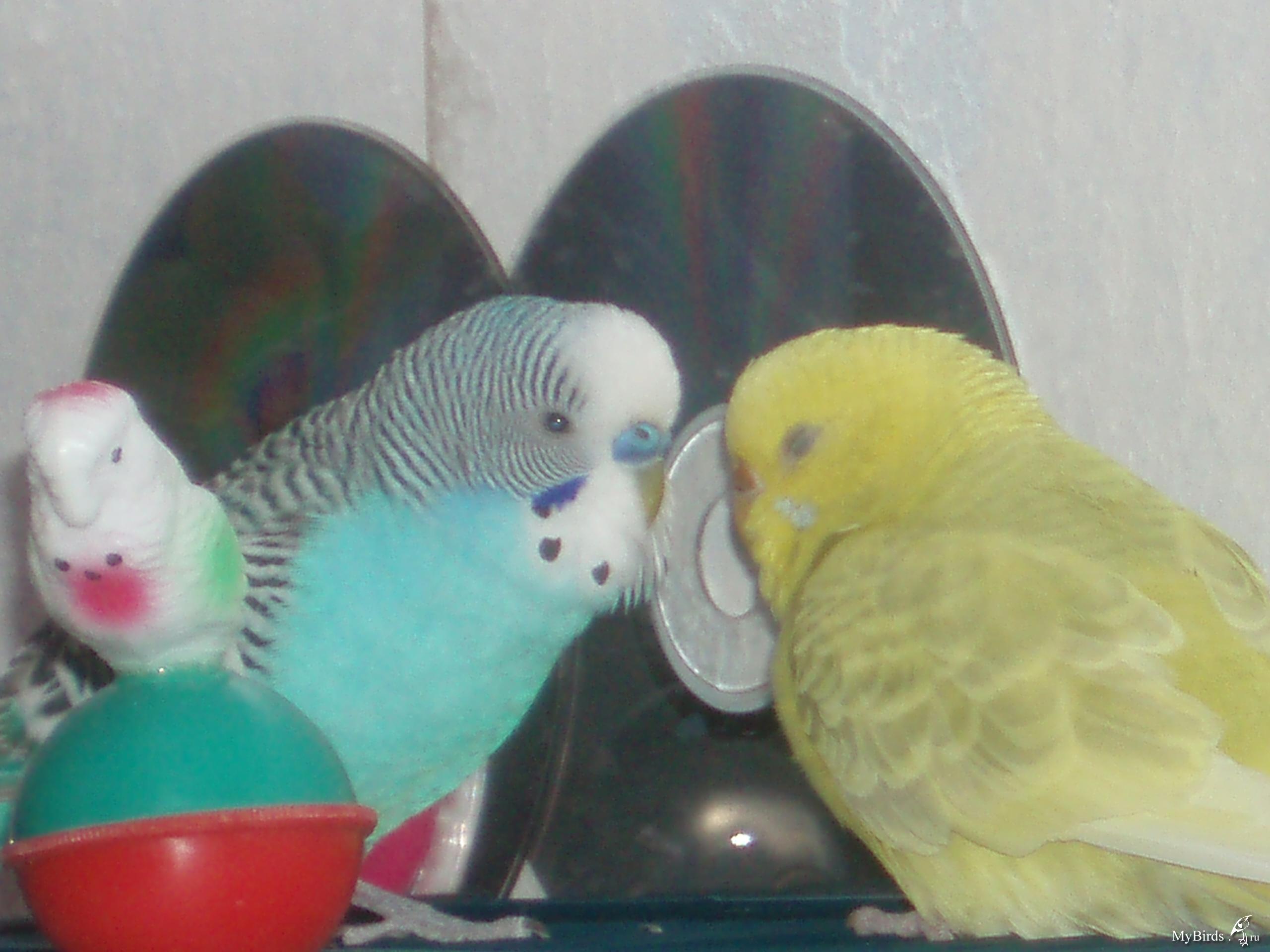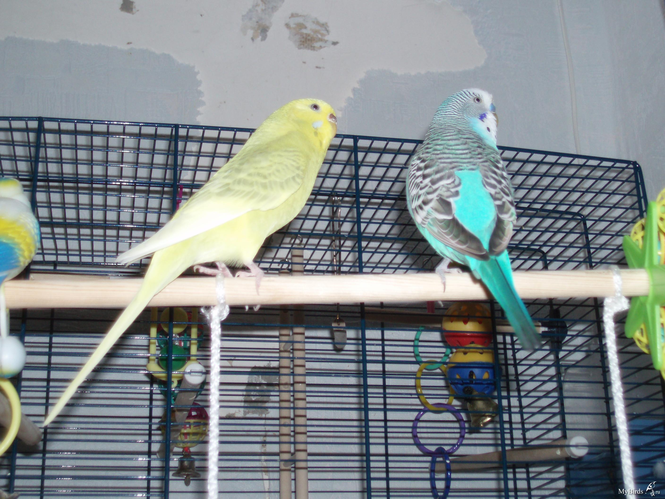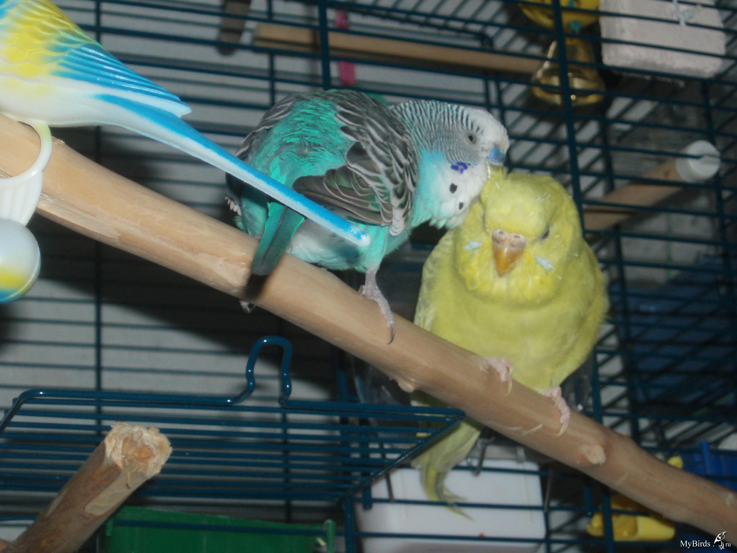 А мои Вася с Люсей, пока еще не подружились. Люся опасается Василька, потому что он глупыш и малявка. Васька все время скачет вокруг нее, стремится быть поближе, при этом все время налетая на Люську и сшибая ее с жердочки. Люсьена у нас дама солидная, ей уже 9 месяцев, а тут вокруг летает какой-то Несолидный :pilot2::slap: , поклевать толком зернышки не дает :dont: и полюбоваться перед зеркалом на свою неземную красоту! :spruce_up: