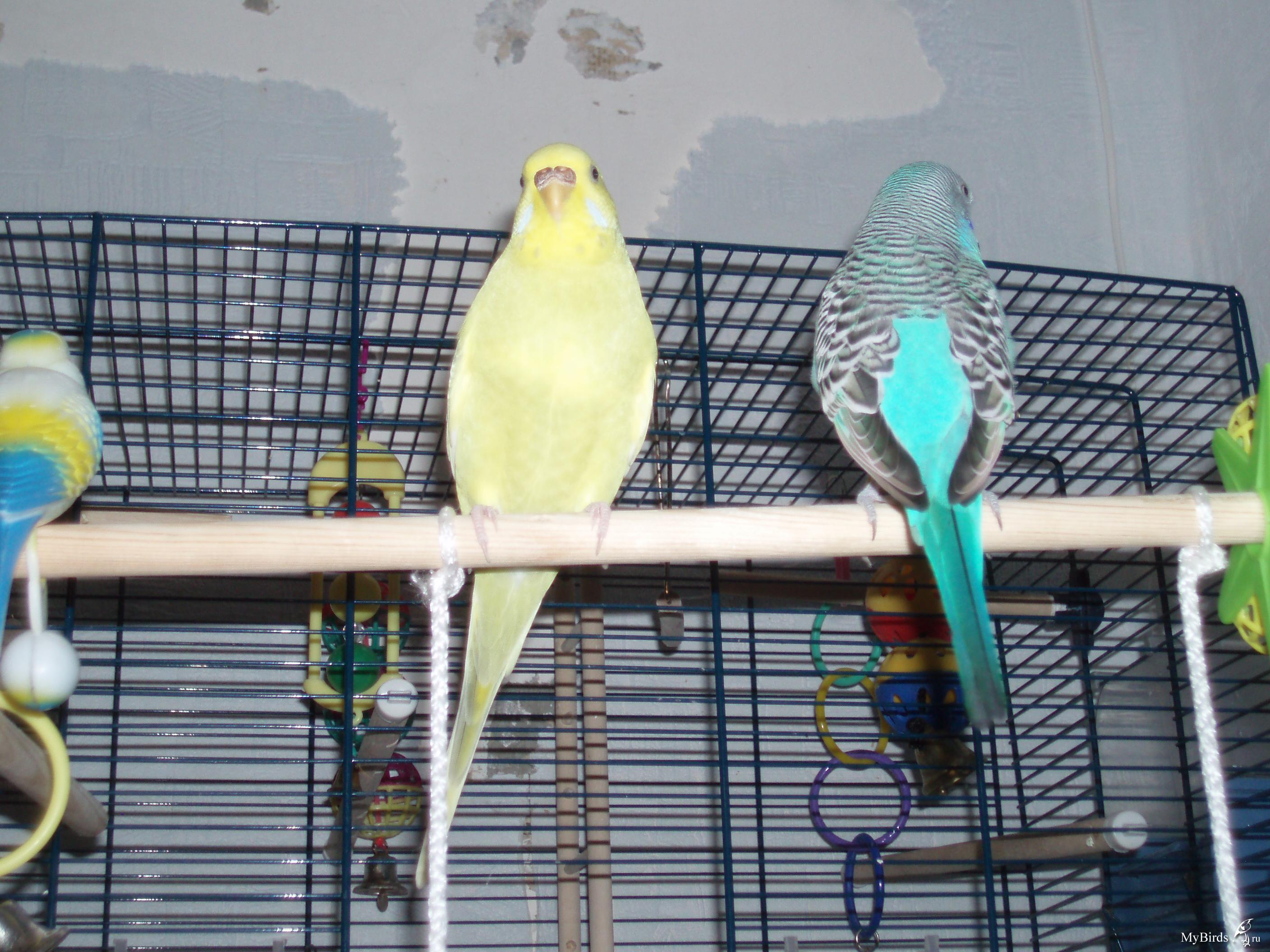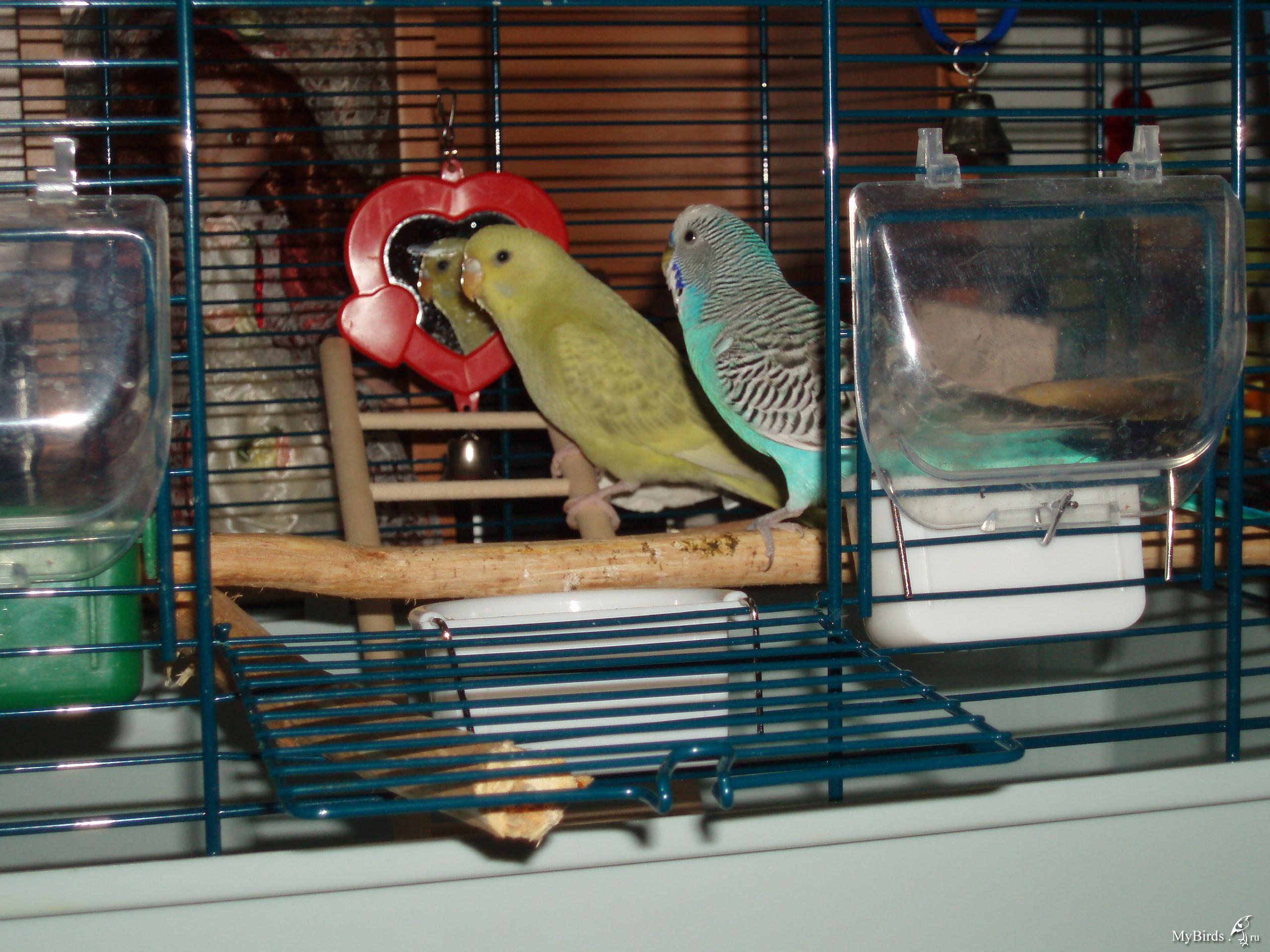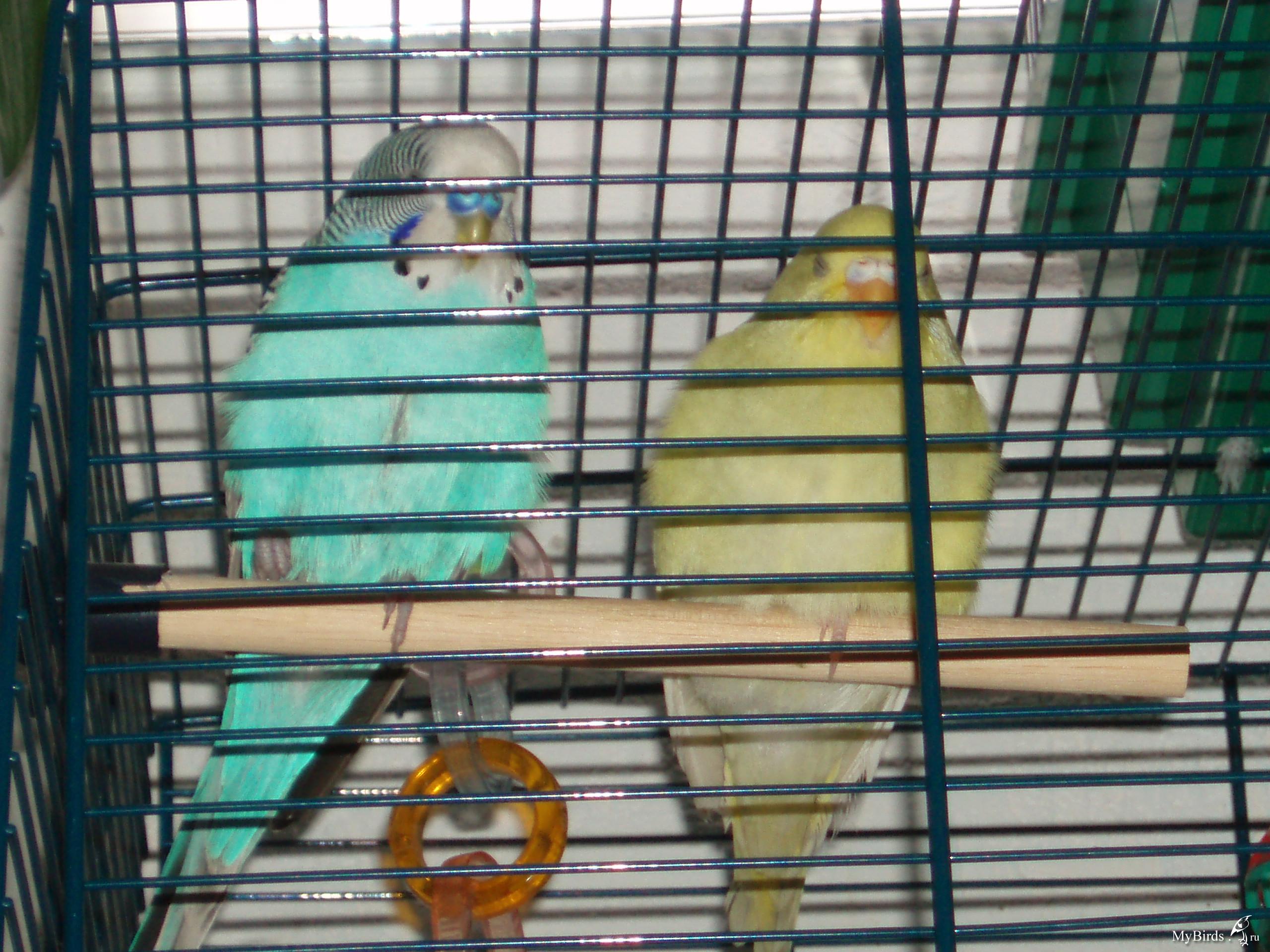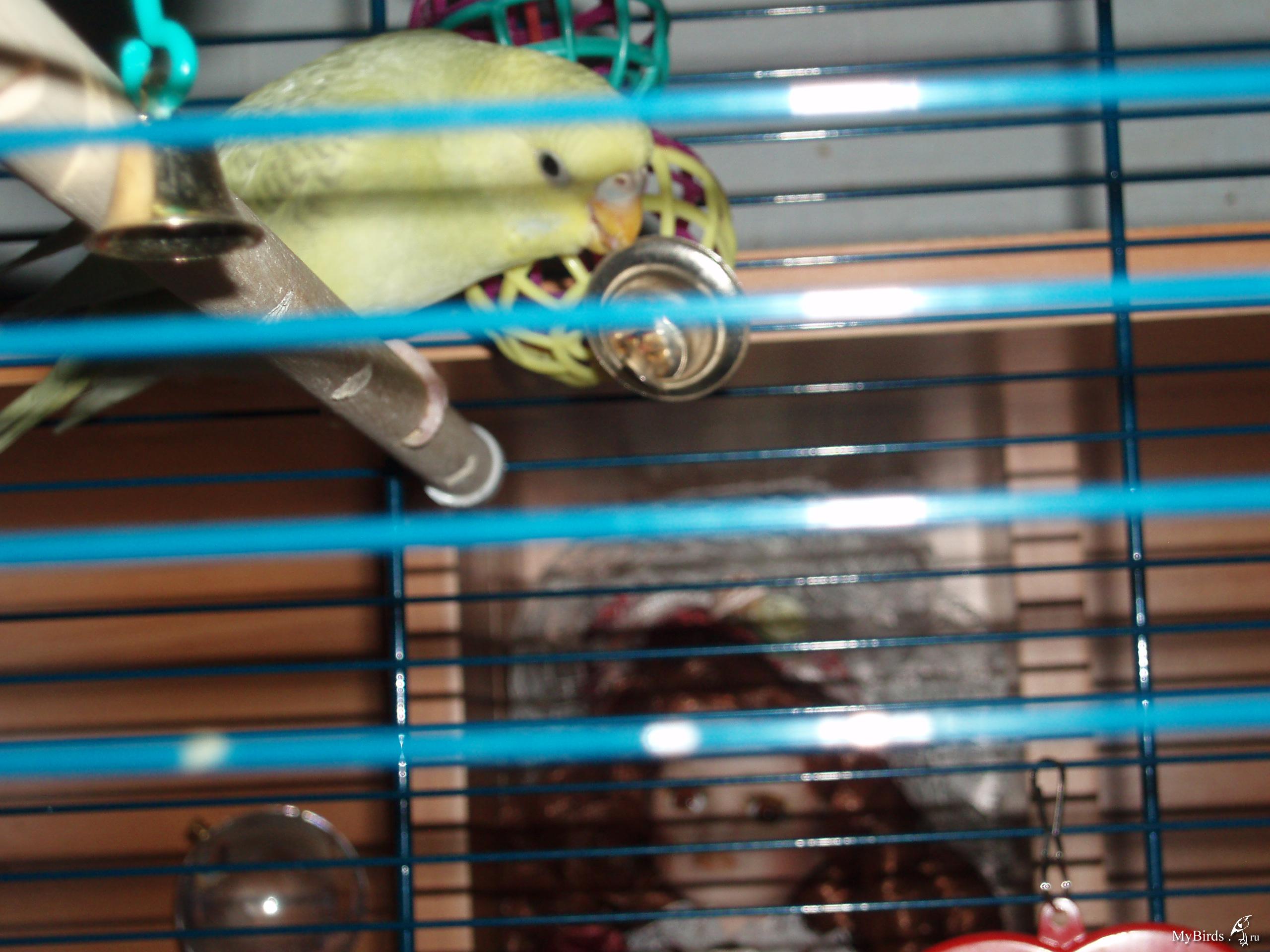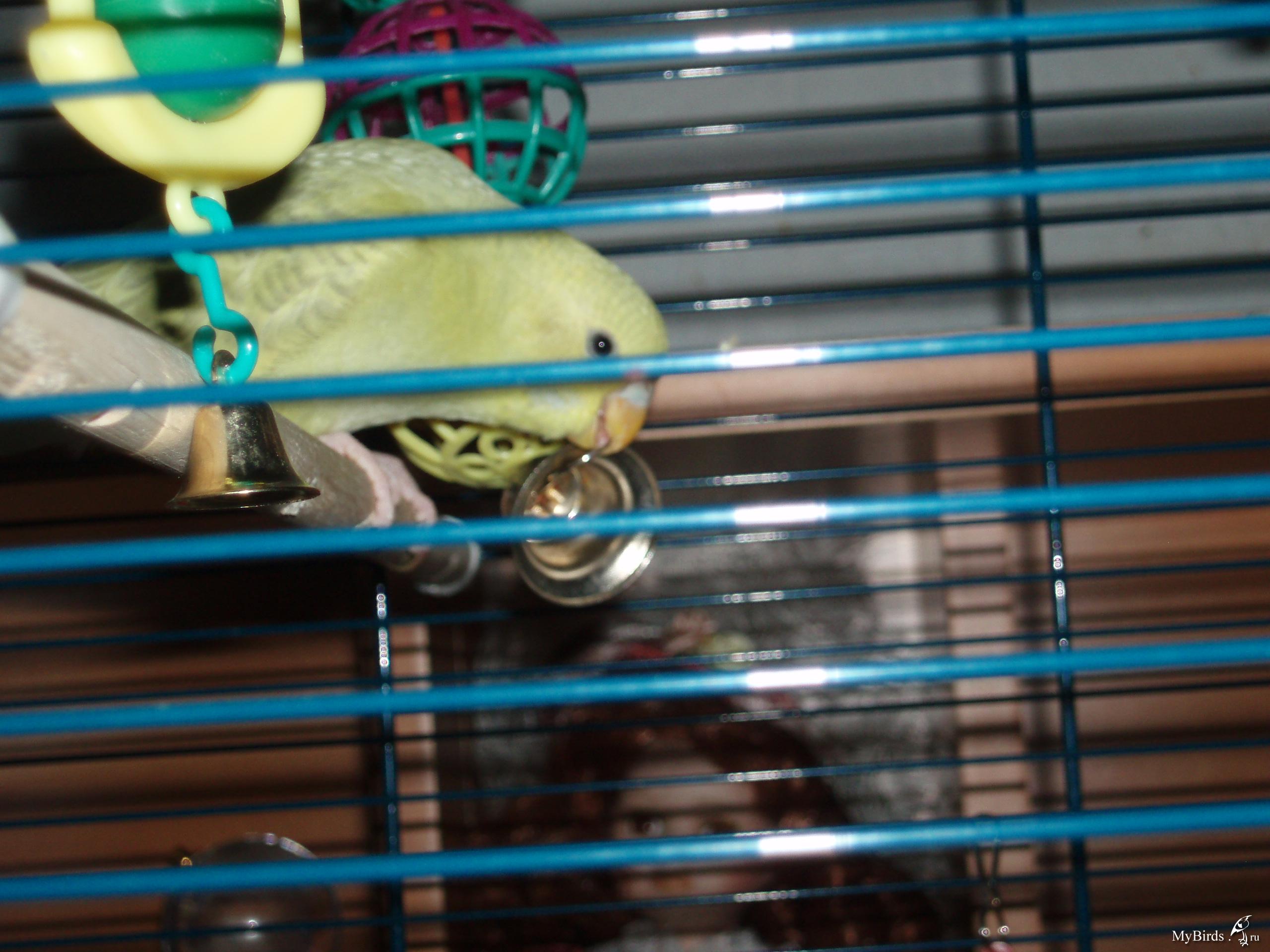 А мои Вася с Люсей, пока еще не подружились. Люся опасается Василька, потому что он глупыш и малявка. Васька все время скачет вокруг нее, стремится быть поближе, при этом все время налетая на Люську и сшибая ее с жердочки. Люсьена у нас дама солидная, ей уже 9 месяцев, а тут вокруг летает какой-то Несолидный :pilot2::slap: , поклевать толком зернышки не дает :dont: и полюбоваться перед зеркалом на свою неземную красоту! :spruce_up: