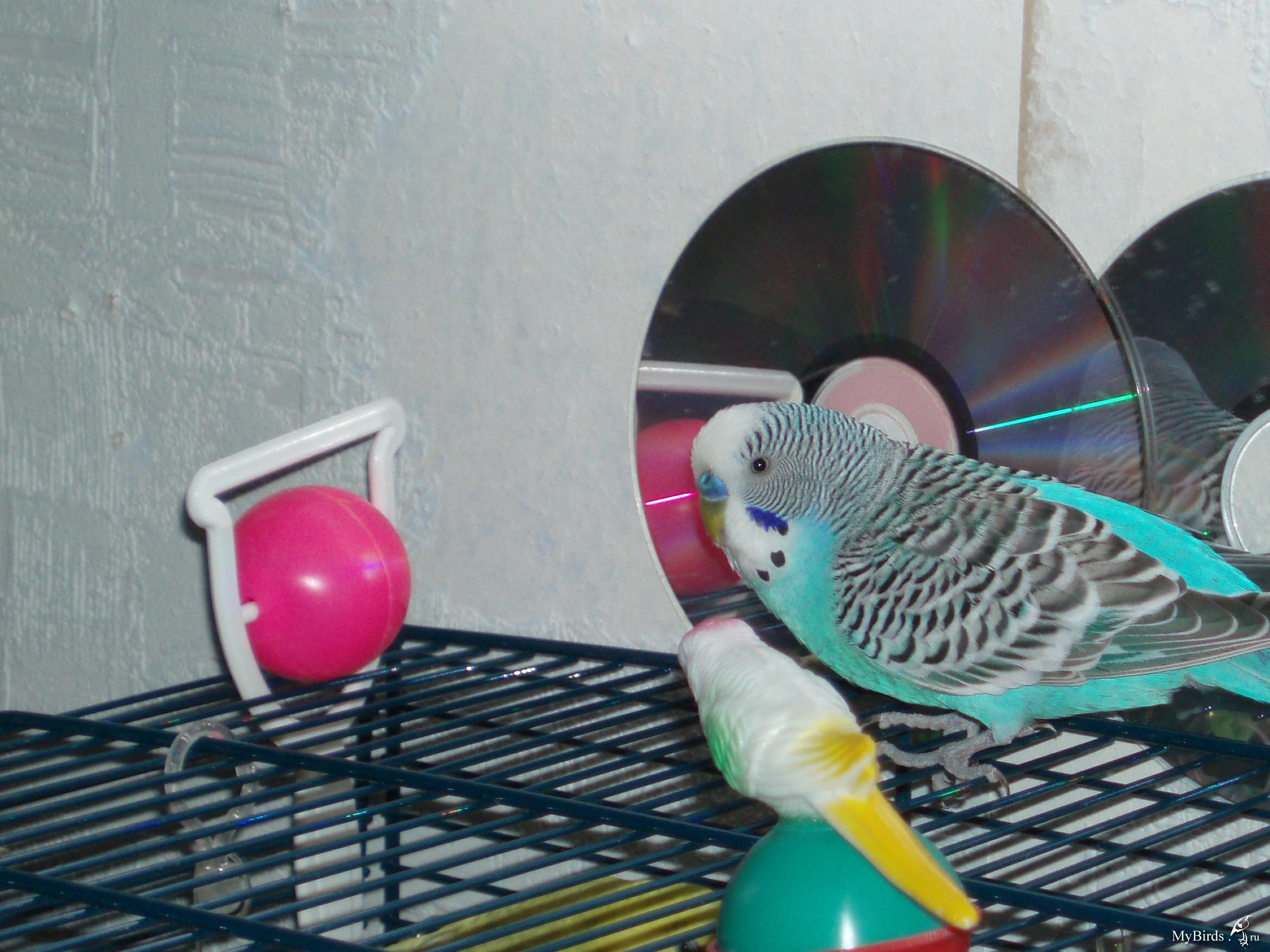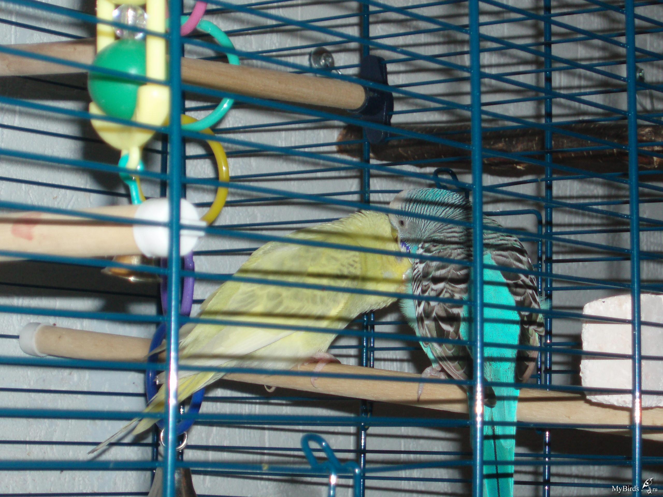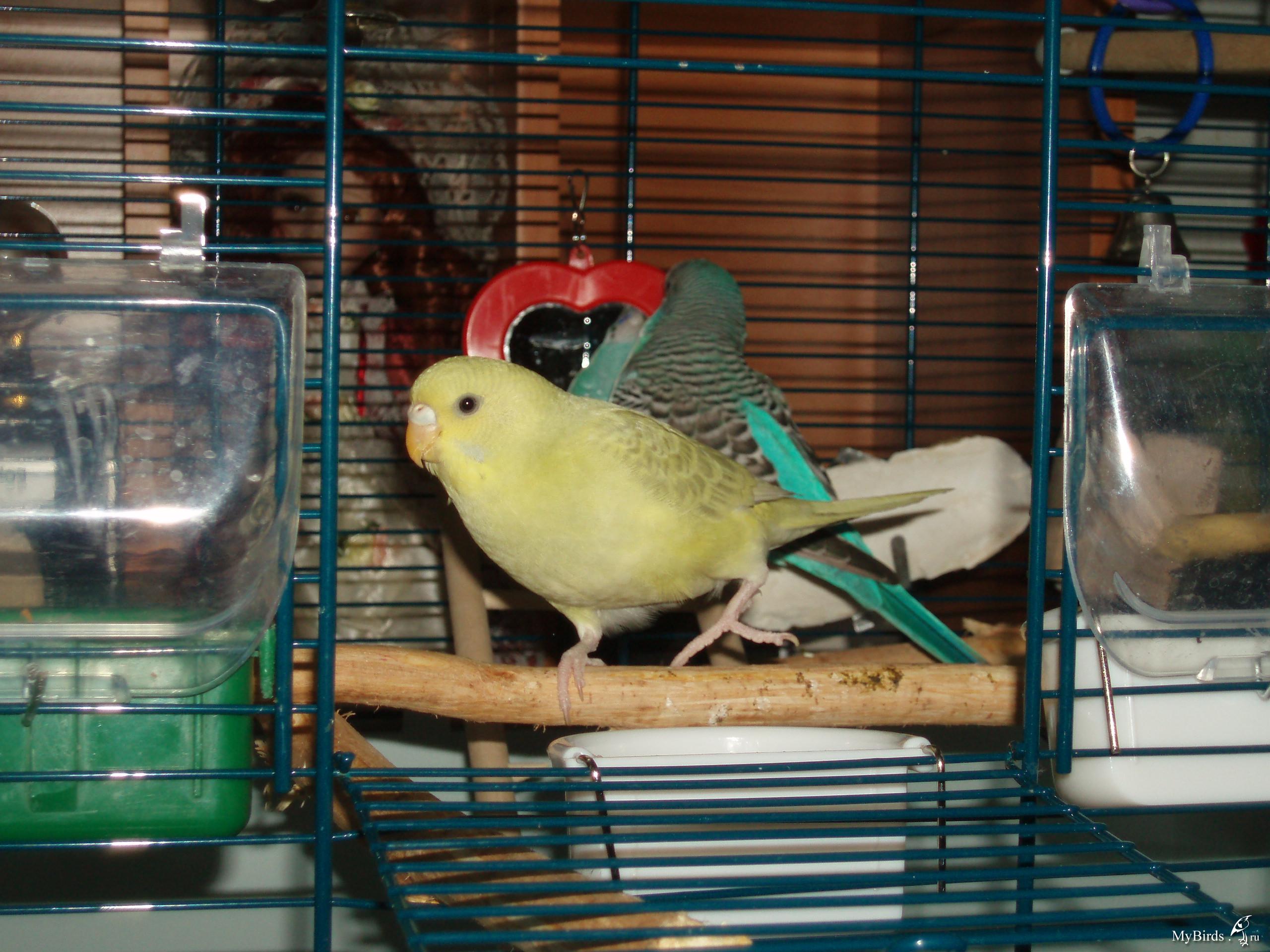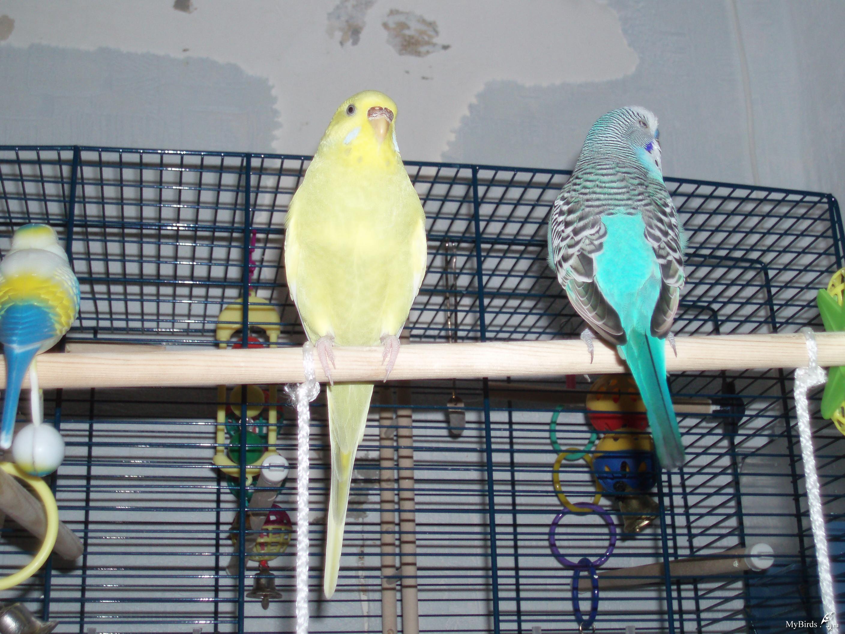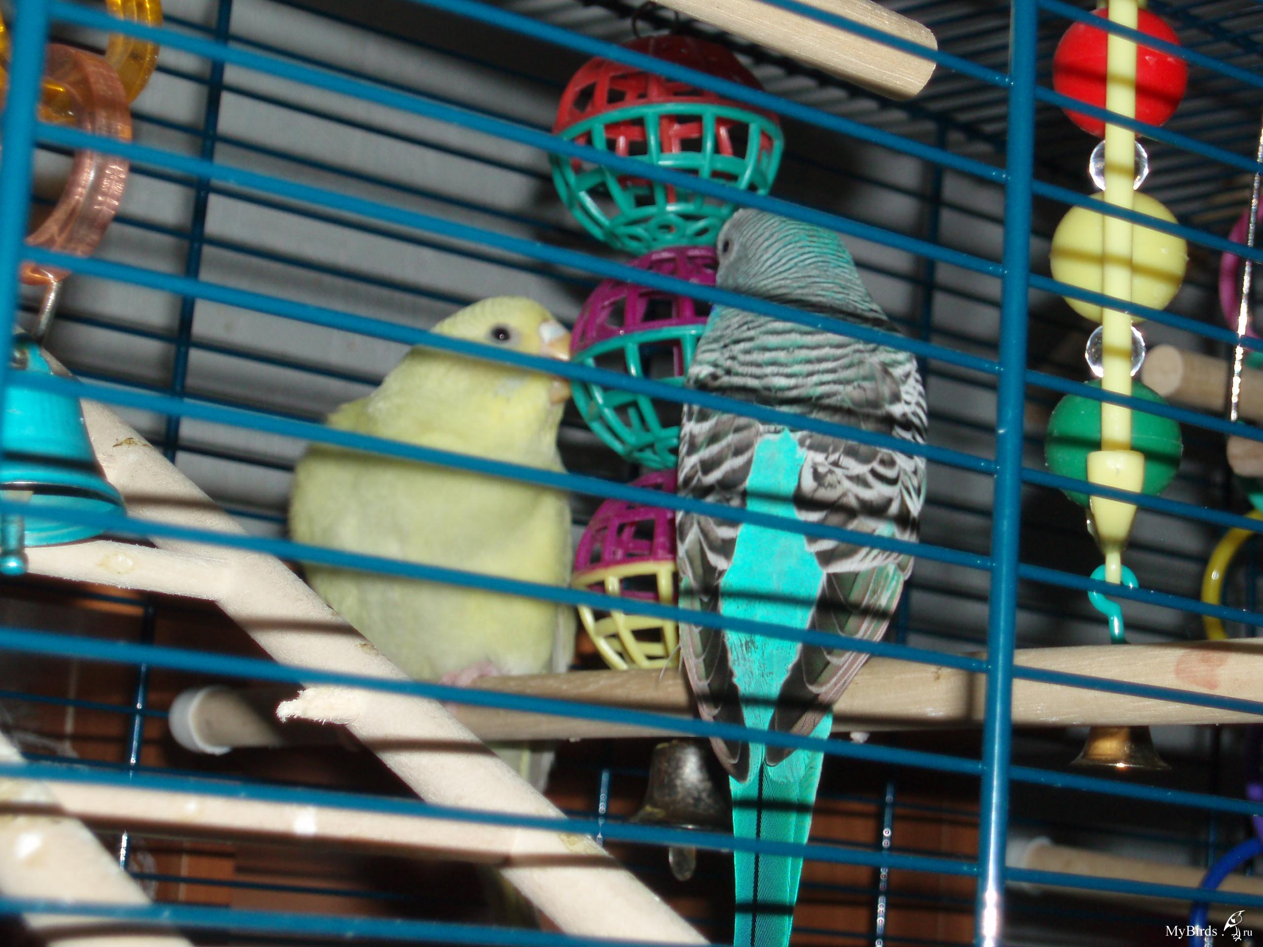 А мои Вася с Люсей, пока еще не подружились. Люся опасается Василька, потому что он глупыш и малявка. Васька все время скачет вокруг нее, стремится быть поближе, при этом все время налетая на Люську и сшибая ее с жердочки. Люсьена у нас дама солидная, ей уже 9 месяцев, а тут вокруг летает какой-то Несолидный :pilot2::slap: , поклевать толком зернышки не дает :dont: и полюбоваться перед зеркалом на свою неземную красоту! :spruce_up: