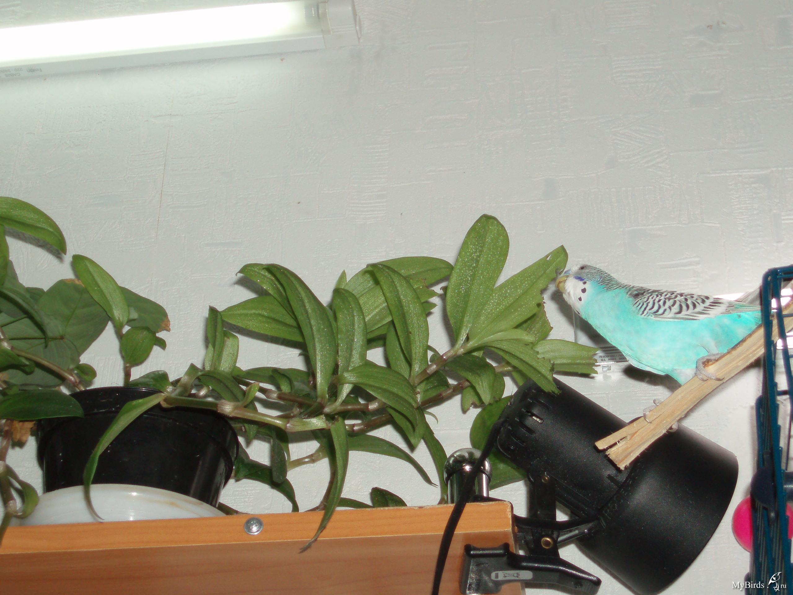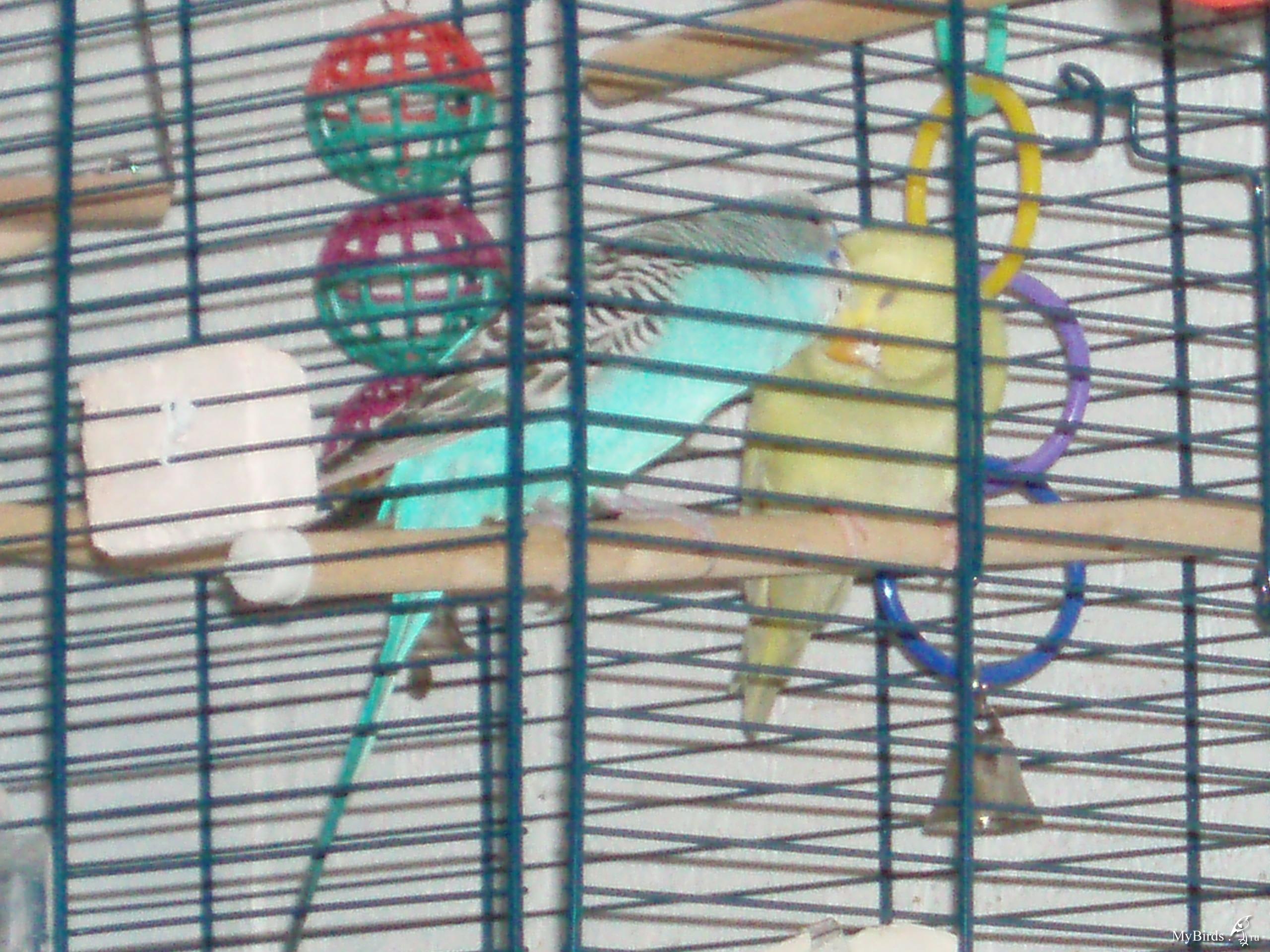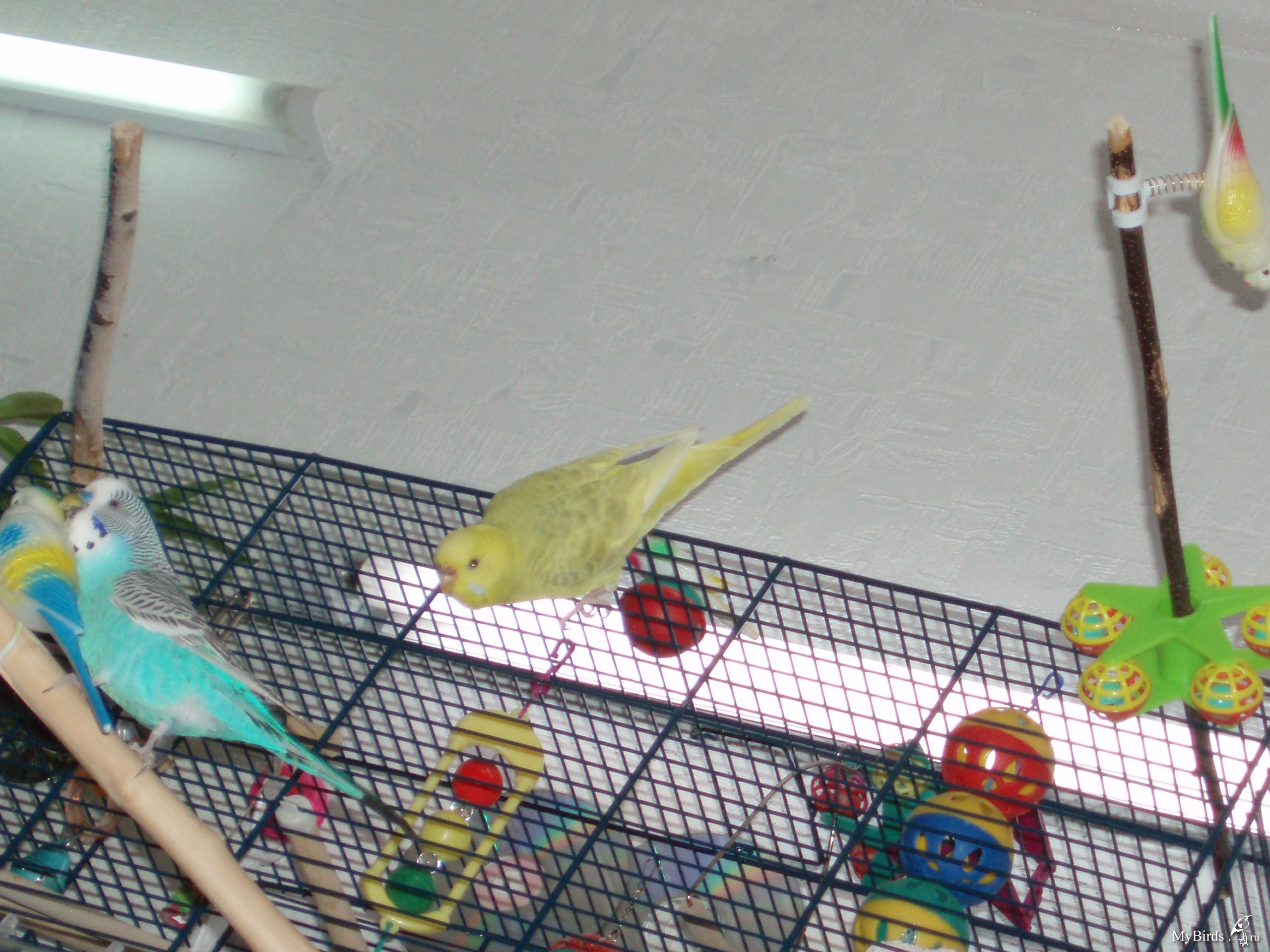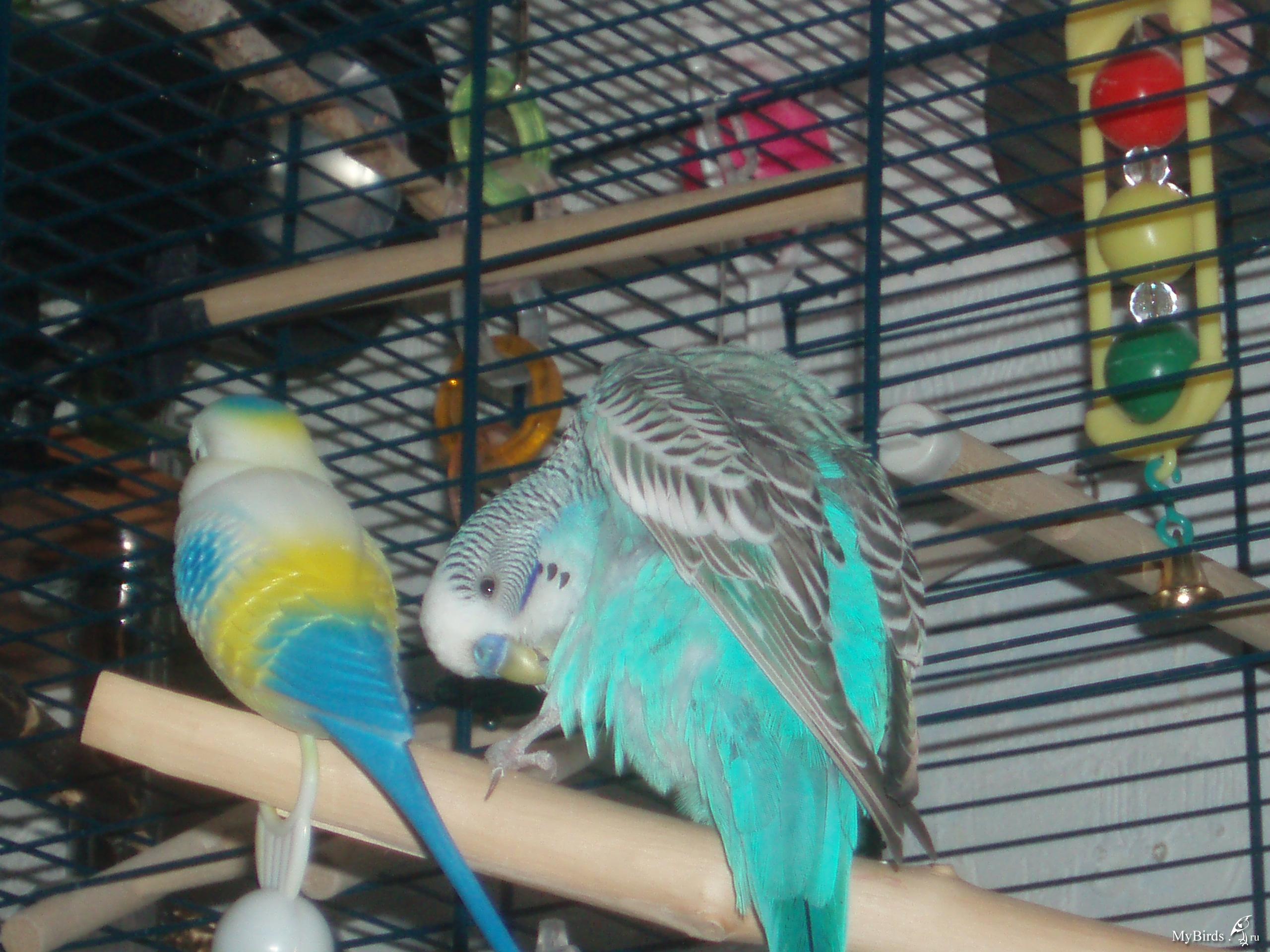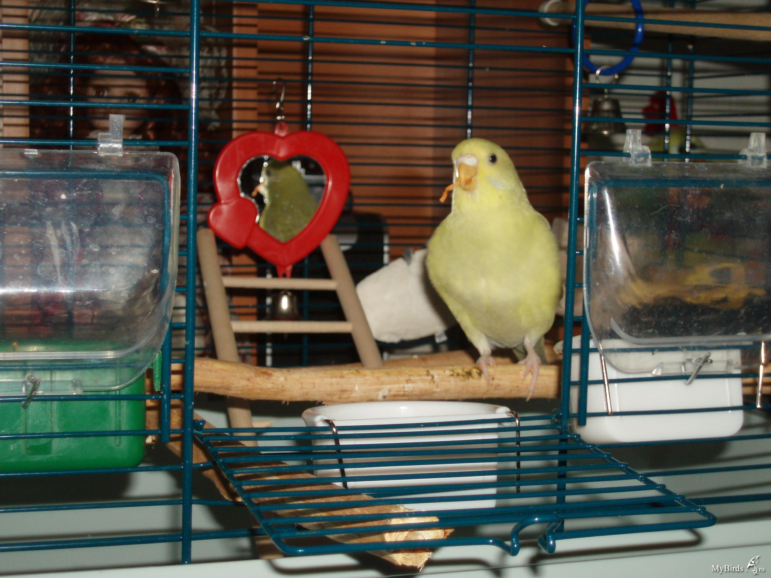 А мои Вася с Люсей, пока еще не подружились. Люся опасается Василька, потому что он глупыш и малявка. Васька все время скачет вокруг нее, стремится быть поближе, при этом все время налетая на Люську и сшибая ее с жердочки. Люсьена у нас дама солидная, ей уже 9 месяцев, а тут вокруг летает какой-то Несолидный :pilot2::slap: , поклевать толком зернышки не дает :dont: и полюбоваться перед зеркалом на свою неземную красоту! :spruce_up: