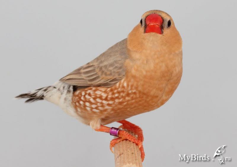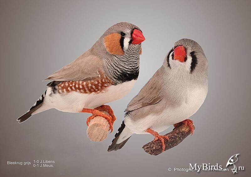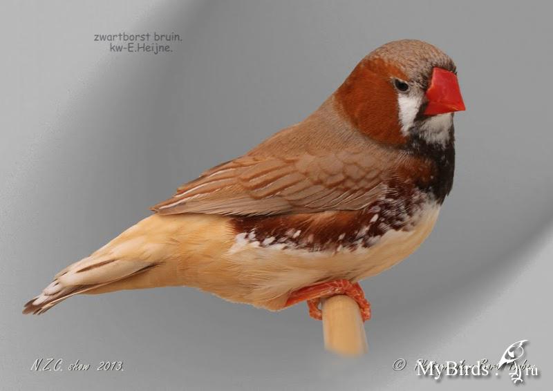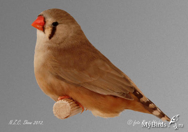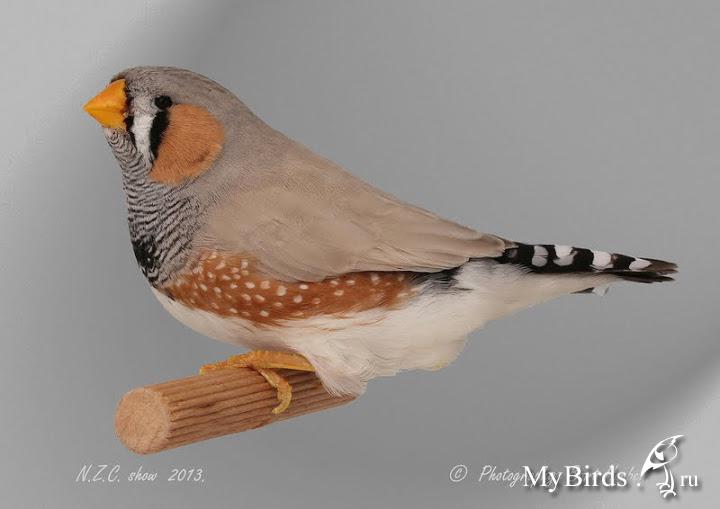 GA. Опубликовано 6 февраля, 2009 #3 Опубликовано 6 февраля, 2009 (изменено) Впервые, т.н. выставочные зебровые амадины, появились у наших любителей 7-8 лет назад. От привычных и более распространенных зебровых амадин, они отличаются крупными размерами и более округлыми формами. Уместно провести аналогию с выставочными волнистыми попугайчиками, т.к. кроме массивности, они также имеют более крупные и ярко выраженные видовые признаки, в окраске различных участков тела. В последнее время, когда больше преобладают "породы" -"пушистик", "масик", "рыжик" и т.п., о качестве этих птиц все чаще приходиться сожалеть, основная причина - неправильная селекция, т.к. не только ухудшаются внешние данные, но и снижается жизнеспособность искуственно созданной формы... ...последнее фото, принятый стандарт - 12,5 см!!! Изменено 6 февраля, 2009 пользователем GA.