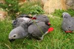 Amazona Опубликовано 29 августа, 2005 Автор #420 Опубликовано 29 августа, 2005 Наконец то мы приехали с летних каникул. Особенно возмужал и окреп физически и морально наш Коня(год и 3 месяца). Теперь кроме многочисленных домашних слов в свой репертуар Коня внёс и крики высоко летящих ворон, и голос возбуждённой галки. Стал вообщем "серьёзной" птицей. А птенчики - и есть птенчики -покушать да после сна вылезти по лестничке посмотреть окружающий мир это в обязательном порядке. Жакоши на выпасе великолепно смотрятся. Странно, но через некоторое время зарываются в траву и с жадностью стараются грызть землю.