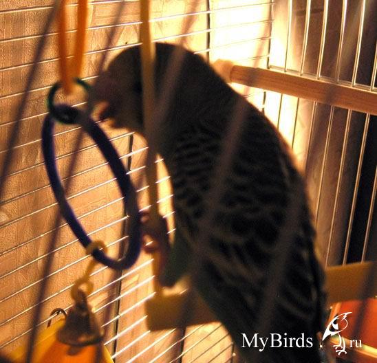4ertovka Опубликовано 11 июня, 2008 #1526 Опубликовано 11 июня, 2008 Игорёк, мой первый опыт Прогресса правда, у нас пока совсем мало, но когда он, наконец, появится (если вообще появится, конечно), то возможно будет интересно следить за нашими достижениями.Появился он у меня 18 мая. Первые две недели сидел на жердочке, как истукан и даже не чирикал. Интересовали его исключительно 2 вещи (они и сейчас его интересуют, но я по возможности стараюсь его от этого оградить): птичье чириканье и зеркало. Он вообще постоянно молчал, но стоило услышать воробьиные голоса – тут же начинал орать и старался вырваться из клетки.Я думаю, что всё дело в том, что он скучал по братьям и сёстрам, помнил их…а человек в моём лице его не интересовал в принципе, вот он и отмалчивался. Итак, вот чего мы добились за всё время совместного проживания:Еда - Есть и пить Игорёк начал сразу. Едим мы только корм и зелень, особенно фанатично относимся к укропу. Регулярно предлагаю яблоко, морковь, апельсин, но пока всё в полном игноре.Ещё любим сухие колоски пшеницы и ещё какой-то травки, которые я купила в зоомагазине. Звуки - Игорёк начал чирикать и бормотать, правда, случается это по настроению и довольно редко, к моему большому сожалению. Я так хочу, чтобы он побольше чирикал, бормотал и даже орал, если ему хочется!Он у меня вообще упрямый молчун, я даже удивляюсь, когда многие рассказывают, что птицы шумные и мешают спать по утрам…для меня это так непривычно).Любит петь вместе со мной, может подпевать моим неумелым напевам и без музыки, но под аккомпанемент подпевает всегда!Любимая музыка Игорька – песни из Бременских музыкантов. А особенно «Луч солнца золотого». Это у нас просто супер-хит)) Полёты - Первый раз случайно выпорхнул на кухне. Это было ужасно…он бился в окно и падал на подоконник, там я его и взяла с помощью кофты. Второй раз случился там же. На этот раз он завалился за холодильник и, слава богу, уцепился за решетку. А она же горячая…Я думала, что попугайчику пришел конец, потому что холодильник сама я никак не смогла бы отодвинуть. А когда я увидела его кое-как застрявшего в решетке, то сразу же вынула и отправила в клетку.Третий полет стал нормальным и почти идеальным…Тут уже я целенаправленно выпустила его гулять в комнате. Игорь сразу же уселся на люстру и летать более не пожелал. Когда я решила, что хватит уже там высиживать, то просто спокойно поднесла ему жердочку и перенесла его на ней в клетку. С тех пор попугайчик находит вход в клетку сам. Более того, он залетает туда по моему зову. Я подхожу к клетке, звоню пару раз в колокол, немного уговариваю его (Игорёк, лети скорее домой, Игоряша, иди ко мне), и Игорь тут, как тут.Сейчас маршрут его полетов весьма скуден. Места посадки: люстра, потолок клетки и внешние жердочки (я их приделала к клетке снаружи). На кухне это так же люстра и клетка. О том, чтобы сесть куда-то ещё птица, похоже, даже не помышляет(((Когда я дома, клетка открыта постоянно, и Игорёк располряжается своей свободой сам. Общение и тактильный контакт - Слушает Игорёк мои речи не слишком внимательно, иногда только склоняет головку на бок, и вроде как прислушивается. На ладонь садится ТОЛЬКО, когда в ней корм. На палец не садится вообще. Без корма руки не признает.Раньше он терпел, когда я тихонько его чесала по грудке, сейчас же начал при любом приближении пальца кусаться. Н