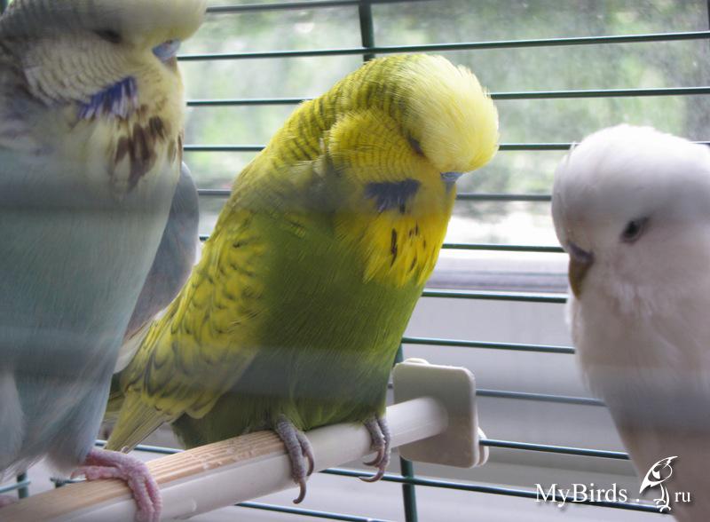 yyna Опубликовано 28 июня, 2011 #394 Опубликовано 28 июня, 2011 Суперский окрас! Желтый очень нежно оттеняет серый Мне из моих серых птенцов вот этот осветленный спенгл (4мес) нравится, тоже очень мягкий оттенок: yyna, Очень нежный окрас у малыша от кого такой получился? самка - зеленый спенгл / как выяснилось, носитель осветленностисамец - осветленный серый птен почти такого же тона, как самец, но из-за того что спенгл, кажется в целом светлее