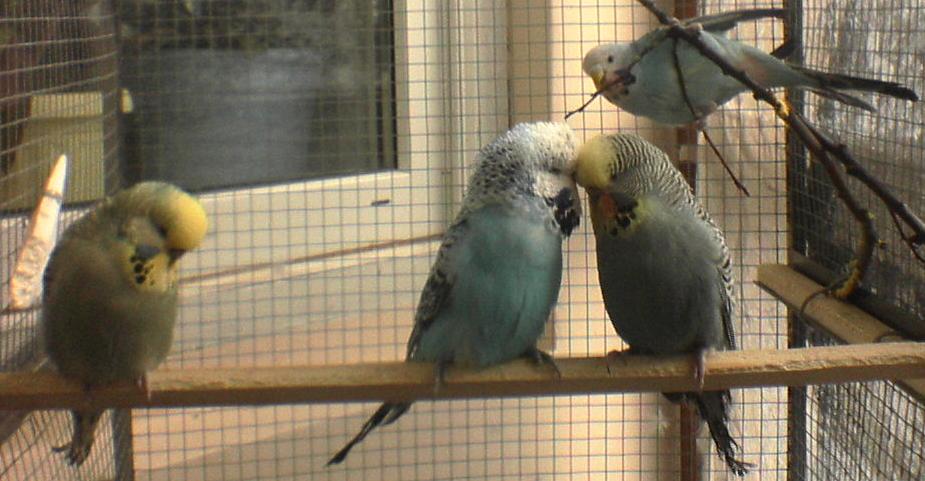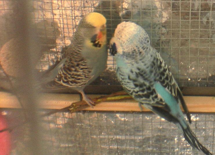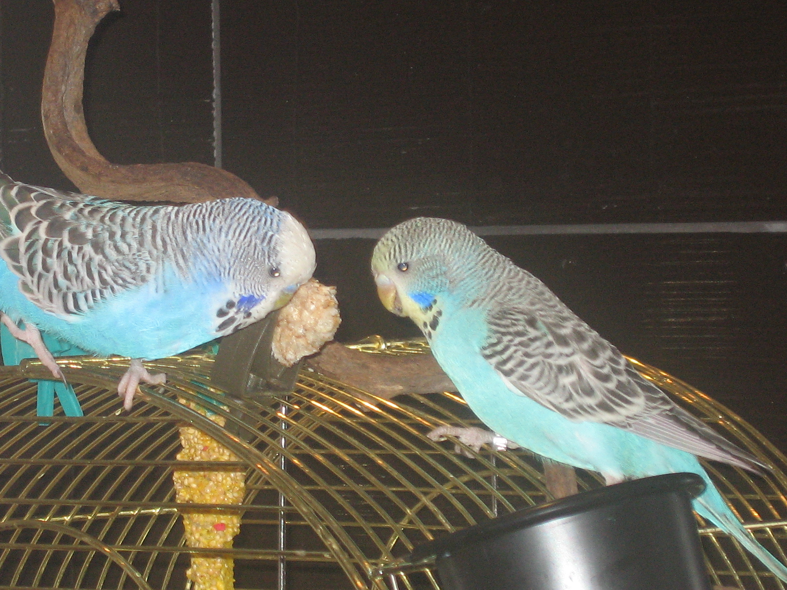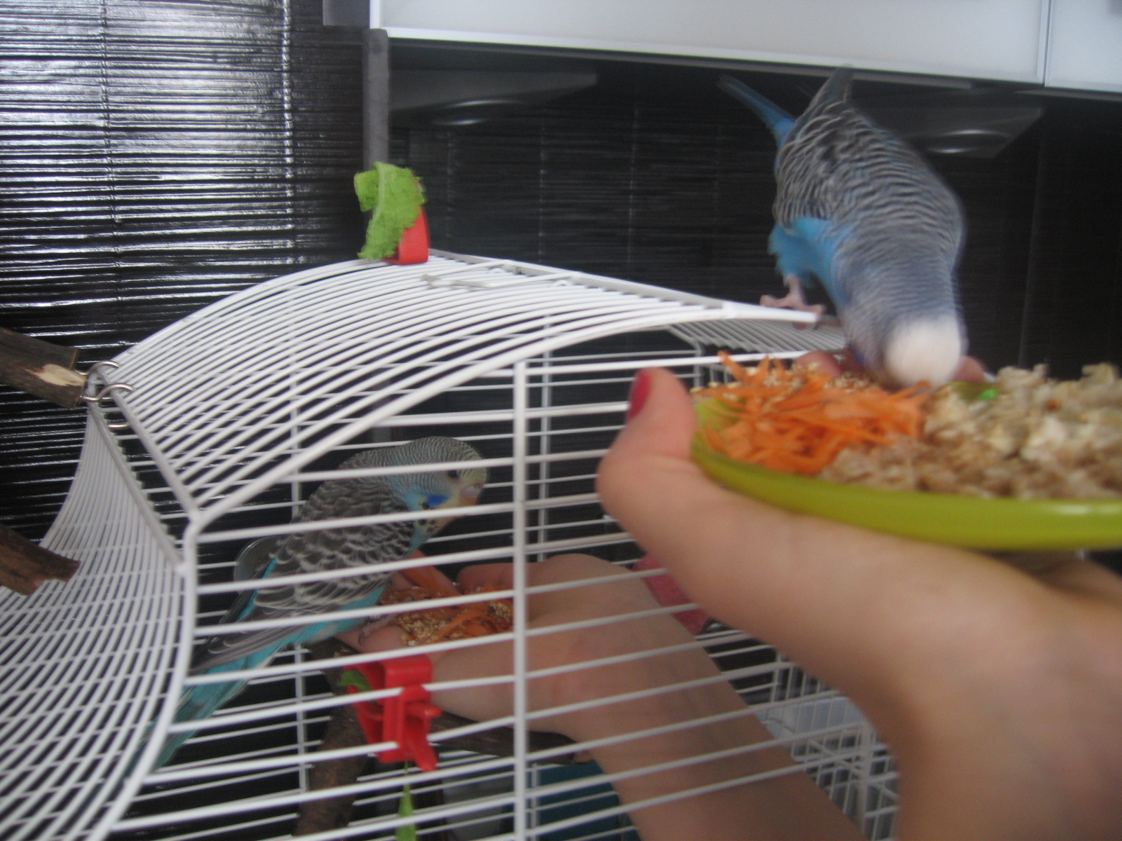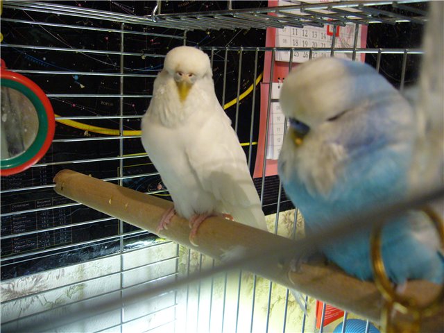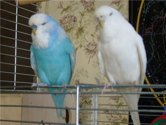 nkozhanova Опубликовано 23 января, 2008 #232 Опубликовано 23 января, 2008 Здравствуйте! В субботу привезла от Манон чудесную самочку, назвали Лучаной. Ее уже поджидал 7-ми месячный жених Луиджи. Живут пока раздельно, но в одной комнате. Лучана спокойно ест с руки, особенно если Луиджи ест рядом. У них с Луиджи прям индийское кино - песни, танцы, поцелуи через клетку. Сегодня я решила ее выпустить. Конечно она не знала куда приземлиться. Я ужасно нервничала. И мне казалось, что Луиджи как-то недостаточно бережно ухаживал за ней!!!! Они радостно поели рис, попили воды и потом она села на руку поесть и я занесла ее в клетку. Вот так у нас все начинается...