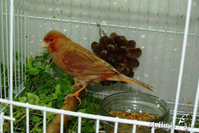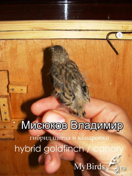 FFK2 Опубликовано 18 июня, 2014 #510 Опубликовано 18 июня, 2014 Расскажу про этих гибридов (на подходе и другие тоже от щеглов и канареек). Самка канарейки краснопалевая была приобретена 5 февраля этого года. Сажал ее с другим щеглом в клетку размером 59-27-39. Клетка с возможностью разделить ее посередине перегородкой (сетчатой и глухой). Щегол был мне подарен вместе с другими год назад (у прошлого хозяина жили в ужасных условиях, облезшие, стаей в 6 голов в одной попугаечной клетке). На данный момент 4,5 года в неволе щеглу.Самка клетка Световой день у всех моих птиц зимой был 9.00 часов (в ноябре) сейчас 16 ч 30 минут. (июнь с 5.30 до 22.00). Птицы на искусственном освещении на балконе. Лампы по спектру соответствуют требованиям ламп для птиц (но не фирменные - Аркадия...а обычные дневного цвета). Прямой свет не падает на клетки. Птиц содержал стайкой (4 щегла и одна канарейка желтая изабелловая окраска). Кормление обычное - зерносмеси рио (для лесных птиц, для экзотических птиц, для канареек основной) или намешанный мной состав. Даю мокричник, огурцы, яблоки, одуванчик все части, различные полевые травы восковой спелости, дурнишник (секатором попалам) и иногда репейник (но очень редко т.к. много колючих отходов). Купалки ставлю 2 раза в неделю (иногда чаще). Мешанка в течении года 2 раза в неделю, а в сезон с марта 3-4 раза (причем даю приблизительно 2 чайные ложки на птицу. Все советуют меньше давать). Так же даю иногда хвою всем птицам. Все употребляют ее. В первые 3 дня когда вылупились птенцы не давал зелени самке, чтобы не было поноса у птенцов. Потом все перечисленное почти в неограниченном количестве. Подкладывал по мере поедания. У самки с первым щеглом было 2 пустые кладки по 4 и 3 яйца. Дал отсидеть на обеих кладках. Смотрю, что нет особой симпатии между ними. Решил сделать смену партнеров (в другой кладке тоже пустышки). После смены в этой паре 4 яйца и все оплодотвренные. Щегол из той же бедной стайки (4.5 года в неволе). Причем с поломанным ранее крылом, но крыло срослось и летает нормально. Яйца в первых пустых кладках менял на муляжи...но отчаявшись в этой кладке не веря в свои силы я не стал менять на муляжи (в чем и была ошибка). Самца не сразу отсаживал. На седьмой день от начала кладки просветил и увидел зародыш тогда сразу отгородил самца сетчатой перегородкой. Больше его не подсаживал. Птенцы начали вылупляться по одному с 30 мая. Трое первых птенцов значительно обгоняли последнего и он умер. У меня не было возможности его подкармливать. Самка кормит исправно. Самка сама выкормила всех трех птенцов. До просечивания заметил симпатию щегла и кенарки. Он кормил ее. Тогда не следующий день просветил кладку. 4 из четырех оплодотворены. На 7 день начал одевать кольца 3.0 мм пластиковые заклеенные пленкой для оклейки дверей телесного цвета. Три дня боролся с самкой. Она снимает - я одеваю. На трети день кольца остались на птенцах. На 15-ый день старший птенец вылетел из гнезда. Через 2 дня остальные два. Каждый день беру на руки птенцов по 2-3 раза в день, чтобы были ручные. Когда определю где самец все внимание будет только одному (одного сделаю полностью ручным). 2-3 раз в день ставлю им записи пения птиц. Хочу обучить песне. Видео И фото Гибрид в первый день вылета с гнезда Счастью нет предела!