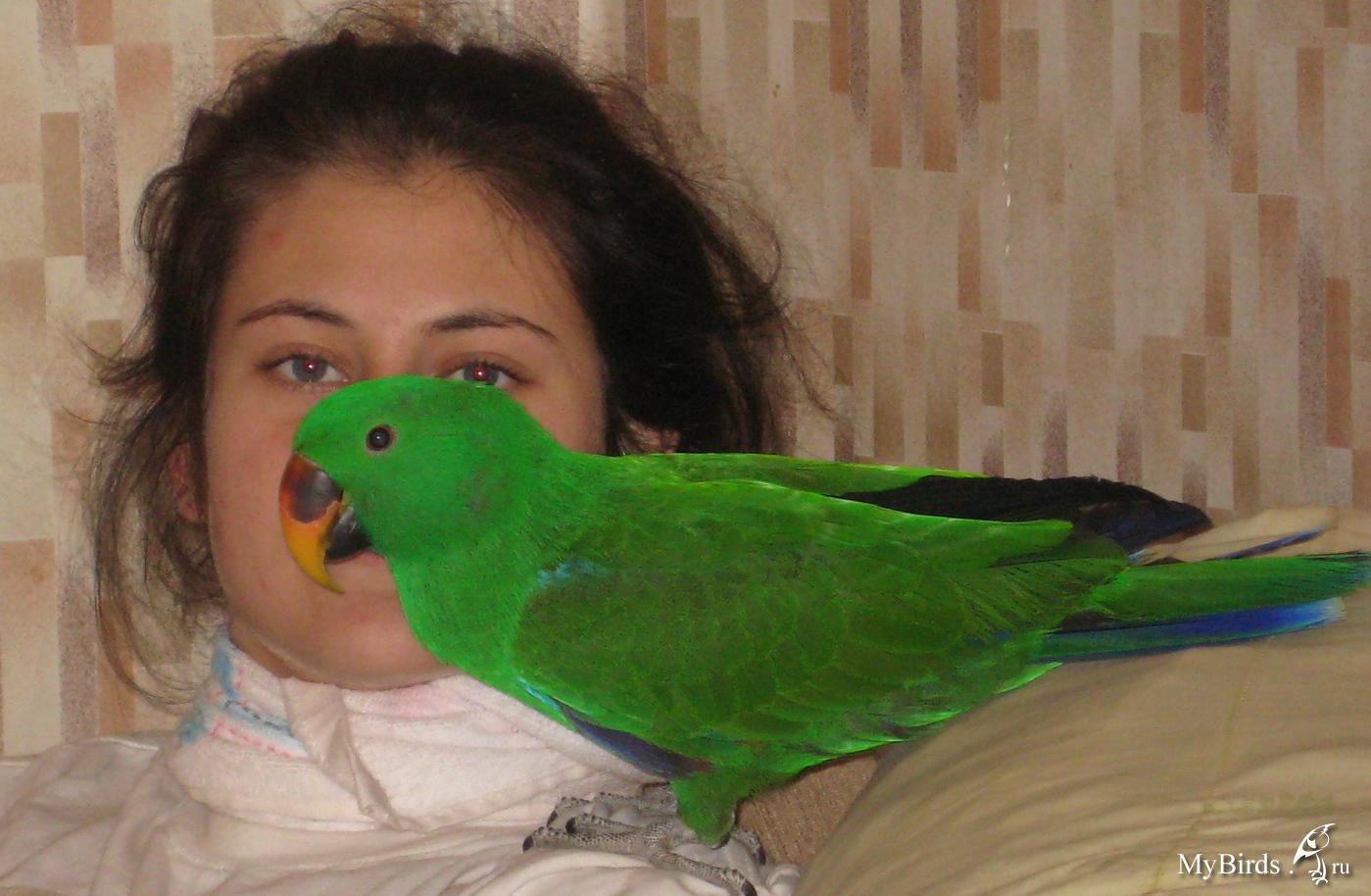 TEANA Опубликовано 31 марта, 2011 Автор #387 Опубликовано 31 марта, 2011 Девочки, всем доброго дня!с таким большим перерывом пишу.. но как говорится, лучше поздно чем никогда..всё на бегу и сесть собраться с мыслями не представляется возможным..У нас с Мироном всё отлично, живем бок обок и радуем друг друга.. Болтает наш мальчишка без умолку, на кухне есть его законное место и вечерами он вещает о прошедшем дне.. говорит много, часто и громко но сказать что подбирает слова по поводу не могу. Из последних наших шедевров песенка Винни-пуха, пум-пурум пум пум, получается невероятно смешно По прежнему признает только меня и мою маму, мужчины совсем не в нашем вкусе, хотя за поцелуй продадимся буквально первому встречному.. Постепенно становимся липучкой, я сопротивляюсь, он всё понимает.. порой даже шокирует меня своим всё пониманием, впечатление что мы частенько настраиваемся на одну частоту С собаками мы так и не подружились, если они играют в комнате где стоит его клетка с рыками и частыми налётами отвоёвываем свою территорию, меня готов защищает от всех я называю его, мой герой! Ой, девочки всё сумбурно так, столько времени прошло, что рассказать не пересказать! Очень благодарна всем кто посещает мою темку, Ваши комментарии со временем становятся для меня ценными советами. ЗЫ.. фото без комментариев, думаю всем всё понятно