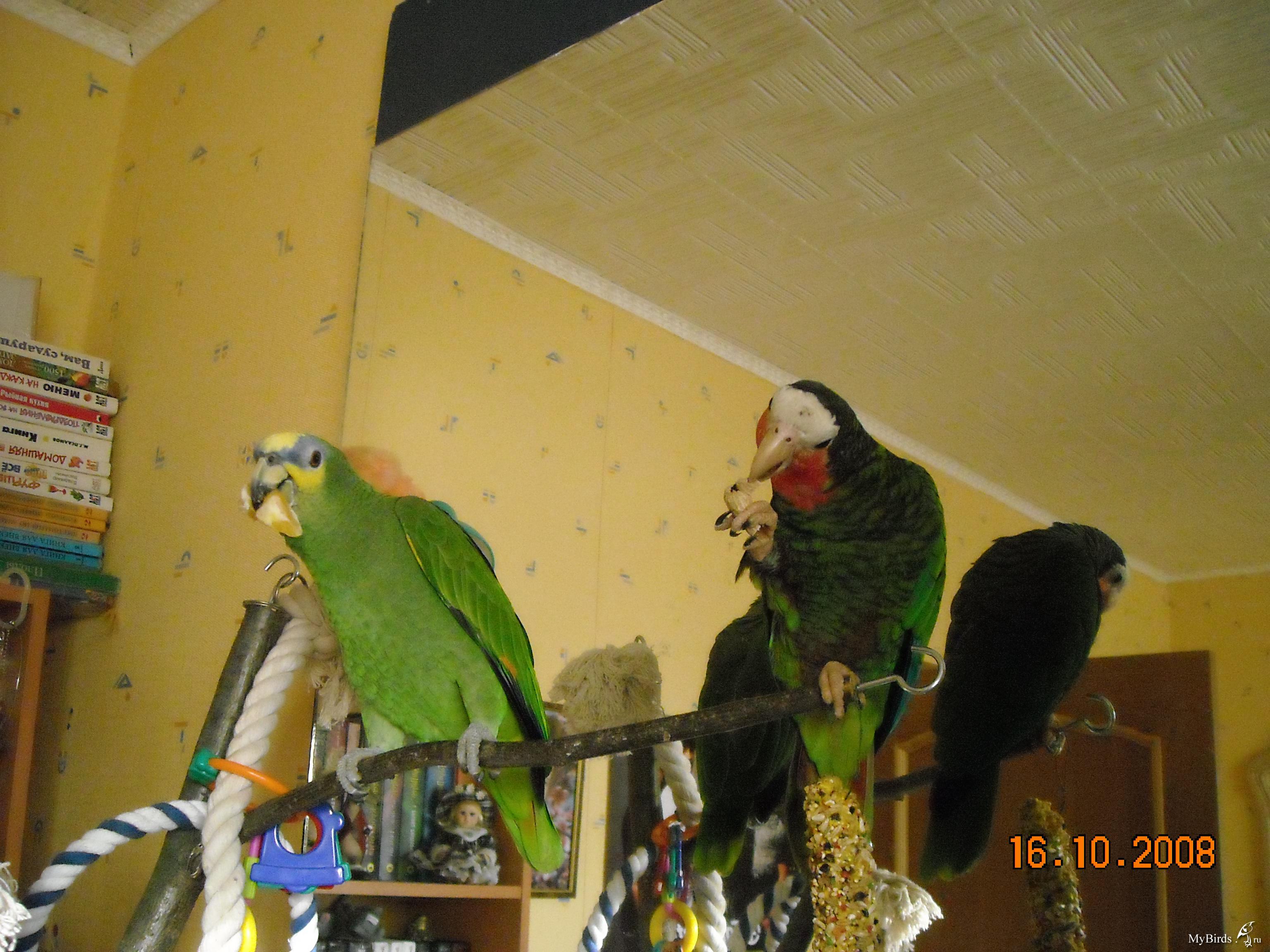 девилан Опубликовано 16 октября, 2009 Автор #4 Опубликовано 16 октября, 2009 вот была такая ситуация: я прикатила дерево (благо, что оно на колесиках) вместе с Соней к клетке с Крузиком. Первый раз Соня смотрела как-то спокойно, но с интересом, тем более, что друг друга они слышали уже. Крузик, как сумашедший начал мотать круги по клетке. Посидела так недолго Соня, я ее опять утащила. На другой день опять я ее везу туда. Она посидела немного на дереве и перелетела на Крузикину клетку, уселась там на палке. Палка плотно прилегает к крыше. Крузик опять стал лазить и естественно по потолку клетки, а Соня начала на него крякать и клювом своим угрожать. Вот теперь я волнуюсь, что она еще его за лапку схватит. Больше я пока ее не возила, но она очень хочет туда полететь и один раз полетела, но остановилась в коридоре и там просидела, может думает, что там дверь закрыта. Раньше еще она летала туда, а дверь мы закрываем и она наталкивалась на нее. В дальнейшем планируем переселить Крузика в его же клетке в комнату к Соне, рядом поставить. а пока вот не знаю, давать ли им возможность встречаться или подождать переселения?