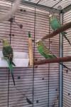 Анютка К Опубликовано 10 сентября, 2011 Автор #901 Опубликовано 10 сентября, 2011 Всем приветики!! А вот и мы! Нас теперь 11 У мня прибавление... два волнистика - мальчик и девочка. Живут они у меня уже почти месяц. Мальчика я назвала Кеша, т.к на Кешу он реагирует, а девочку Марго. Оба зеленые-зеленые, как майская травка Думаю, что уже оба взрослые... мне кажется, что им больше 2х лет. Попали они ко мне так - Знакомая позвонила, сказала, что нашла их на автобусной остановке. Они находились в клетке, которая была подвешена к остановке. С ними была записка "Возьмите в добрые руки"... В тот день на улице был дождь, холодный, сильный ветер... Хорошо, хоть знакомая моя их утром обнаружила, может хоть они не долго находились на улице... хотя кто знает, может они всю ночь там пробыли Короче, жесть... В клетке не было воды... из еды было только ПШЕНО и тухлый помидор... Сама клетка не чистилась, наверное, со дня покупки попугаев, вся в говне - чистого места не было ((( Я уже не говорю о том, что она круглая, маленькая и с одной пластиковой жердочкой. Плюс ко всему дверки клетки не были закрыты на замочки... каким чудом от туда попугаи не по вылетали я не представляю. Короче, знакомая отдала их мне. Я их посадила в нормальную клетку, дала поесть, попить. Попугаи настолько зашуганные. Не чирикали почти, всего шугались. У девочки чесотка была. Прилично так ее клещ поразил. Но, я вылечила. Щас все нормально. И помет хороший. Я все им пролечила.Уже к своим посадила. Дружат. И уже не такие трусишки Вот такая история... На верхней жердочке Бандитка, ниже новенький Кеша, а на кормушке Маргошка.
