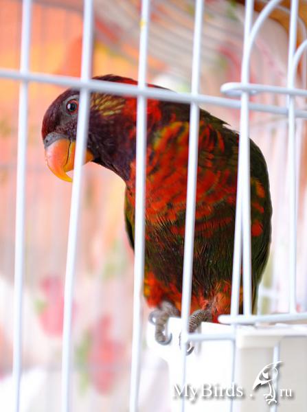 И Кор Опубликовано 21 декабря, 2012 Автор #120 Опубликовано 21 декабря, 2012 Вот птица. Звать ее Рубинчиком, ну вообще-то Рубликом, Рублик-Бублик. Да, он наверное лорикет(хотя орет как лори), но откуда щечки, откуда размерчик(с дамского лори) и откуда такой цвет???? Ему около года... и он 100% индонезийский природник. На фото цвета чуть ярче и чуть светлее настоящих(чтоб хоть что-то было видно), он очень темный, зелень на крыльях оливково-черная, а голова имеет рубиновый отлив, по бокам головы желтоватые щеки, под ними темно-красные пятна, переходящие в оливково-оранжевые к хвосту. Подхвостье оранжево-желтое, приглушенных тонов