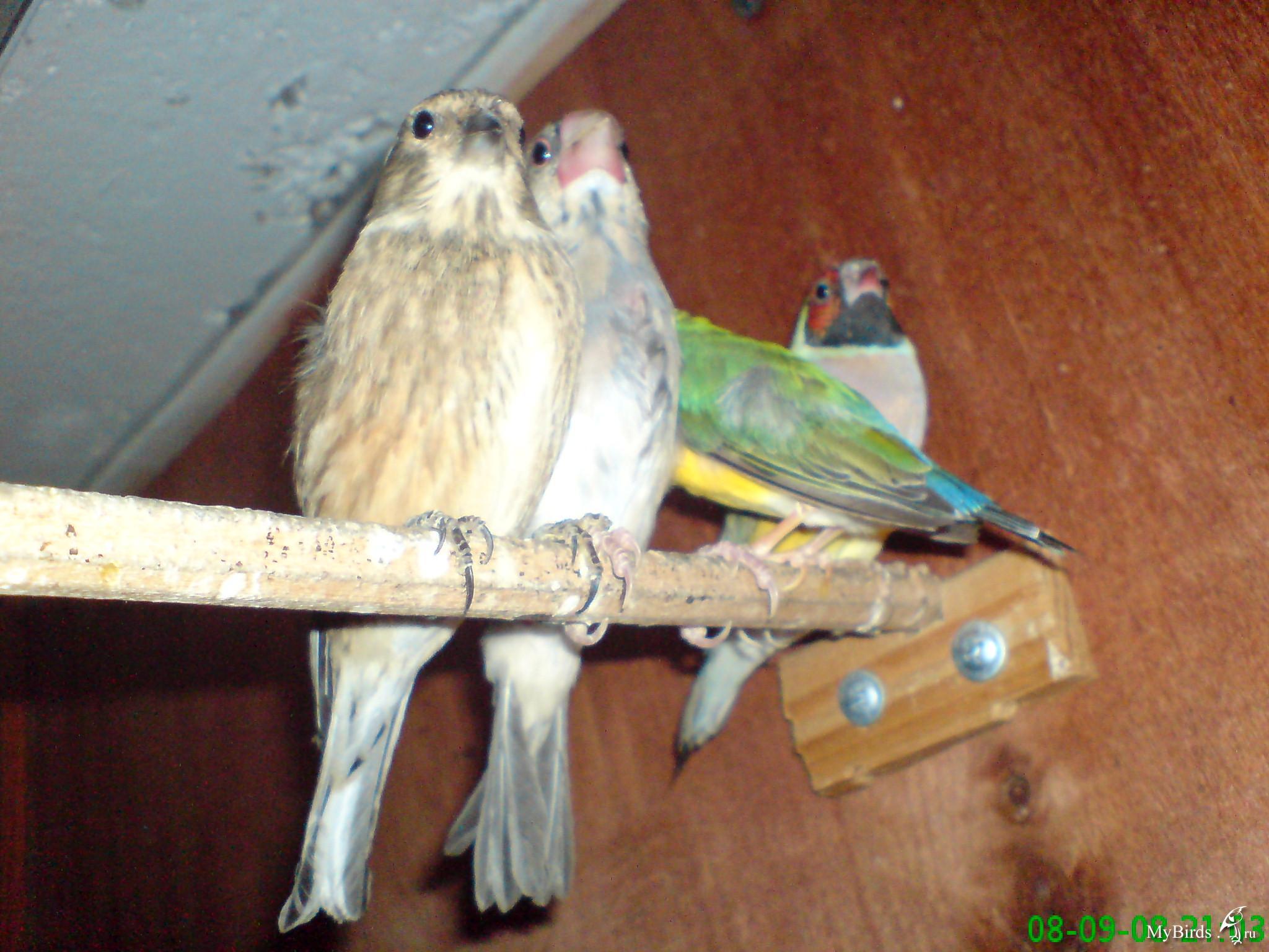 Knutiop Опубликовано 8 сентября, 2008 #38 Опубликовано 8 сентября, 2008 Вот и у меня прибавление! Купил в Киеве пару рисовок и пару острохвостых амадин. Уже поместил всех в общую вольеру. Рисовкам три месяца, а острохвостым сказали восемь. Рисовок в отличии от острохвостых сфоткать не удалось, но позже думаю получится. К стати, как только предложил им мягкий корм - яйцо с морковкой, то ели все, без исключения.