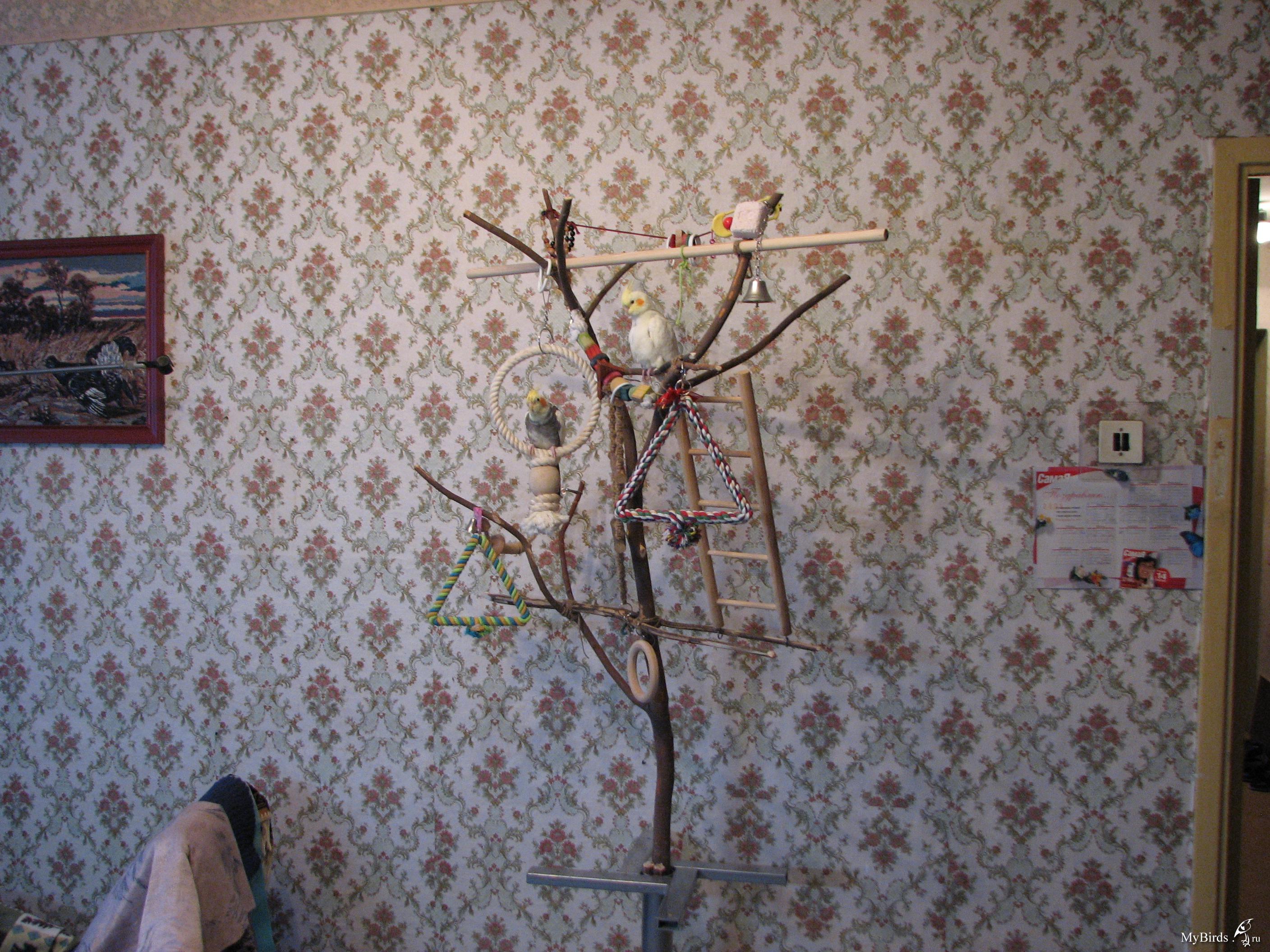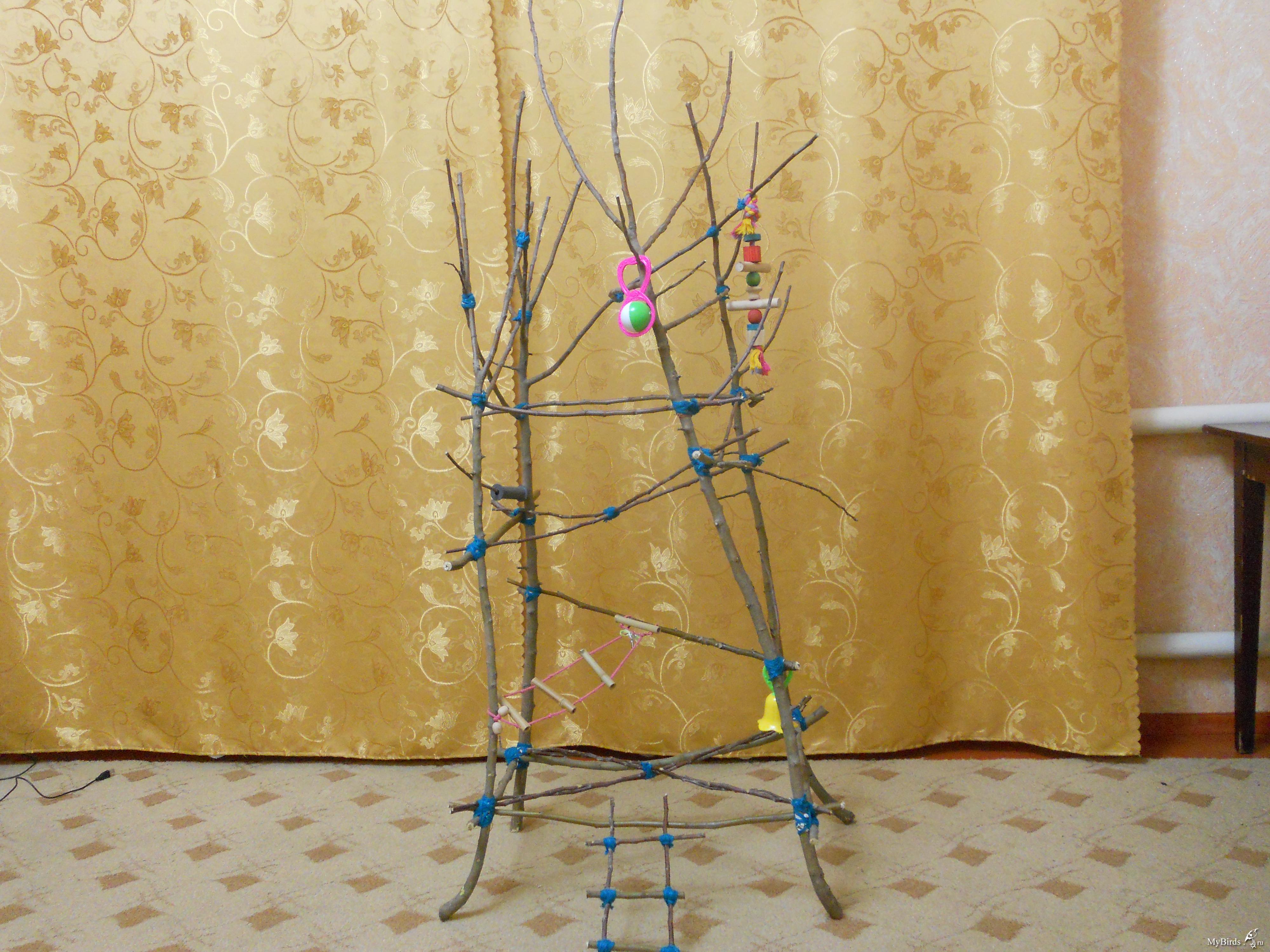 Svetahka Опубликовано 2 февраля, 2011 #24 Опубликовано 2 февраля, 2011 А у нас вот такое деревце, прикрепили к держателю на котором крепятся искусственные ёлки. игрушек пока маловато, но мы над этим работаем, да и птичка только привыкает к нему, пока неохотно садится..