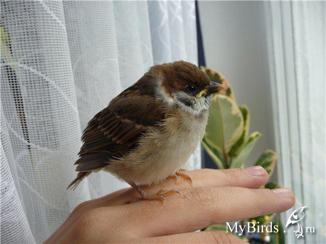 Julietta Опубликовано 24 июля, 2010 #142 Опубликовано 24 июля, 2010 Здравствуйте, сегодня к нам на балкон каким-то образом залетел птенец воробья, скорее всего, упал, т.к. он не летает, только вниз слетать может. Кормила его яйцом и кашей, клюв желтый, ест, но не самостоятельно. Чуть оперившийся, но пушок ещё есть. Шея у него при этом вообще голая - так и должно быть по возрасту или его потрепал кто-то? С виду ран нет. Я не знаю, откуда он выпал, где его гнездо, куда его вернуть, а себе оставить не сможем Помогите, пожалуйста, советом, и может, кому-нибудь нужен воробей в копанию своим птичкам? Жалко его выпускать на улицу, он же погибнет, но что делать - не представляю - с понедельника работа, я даже кормить его регулярно не смогу