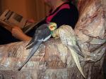 MyNameIsDeD Опубликовано 12 января, 2012 #333 Опубликовано 12 января, 2012 Сегодня состоялось важное событие для жителей моей общаги сегодня к ним добавился еще и мальчик корелл, Шуркин супруг, спасибо Светлане (Sube) :drinks_cheers: Теперь нас четверо... Птиц очень общительный и совсем ручной, сейчас пишу а он сидит у меня на плече Отпали сомнения в поле птица после того как усышал его разнообразное бормотание и крики Он говорит что то похожее на либо "ич" либо "еще", и стучит клювом по жердочке А еще в отличие от Шурки, к зеркалу равнодушной, при подносе его к зеркалу расправляет крылья стукается клювом и начинает пронзительно кричать Не стали устраивать карантин, может и напрасно, но в условиях когда они по любому находятся в одной комнате это сделать трудно, постараемся как можно скорее позвать к себе Валентина P.S. Птицу полтора года и теперь когда понятно что это самец имя Щечки кажется легкомысленным для мужичка. Как думаете ничего если я его переназову? ОН ПОЕТ!!!! Сидящей рядом Шурке Прикольные трельки!!!! Необычно... А Беленькая это самочка ???????????