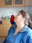 Viktoria00 Опубликовано 1 февраля, 2010 Автор #28 Опубликовано 1 февраля, 2010 Золотой человек! Здоровья ему и скорейшего выздоровления. Пишите, как у Вас дела, что птичка кушает. Разброс цен у нас достаточно большой. Этим летом можно было ручных приобрести за 35000 рублей (один рубль примерно 43 евро, курс скачет). Но обычно цена выше, если не ошибаюсь, около 50000 рублей. Куки кушает все что я ей даю очень послушная девочка>сегодня кушала виноград, гранату, горкий перчик , яблоко , кашку ( я ей варила) , чуть чуть зерновой смеси , укроп очень любит , водичку с медом пила ,сейчас поставила ей простую водичку. А вопще я просто с нее болдею , прихожу домой она сразу садится на плечо что то нежно гурчит мне на ухо ,терется шейкой об мою голову, играет в детские игрушки особенно любит погремушки от моего племянника( как то был и забыл ). Ласковая, дети мои так вопще когда меня дома нету с рук ее неспускают , я уже ругаюсь иногда надо ей тоже спокойствие. Сегодня заехала домой к дедушки взяла ее качелу надо приделать чтобы качалась. Даже муж мой потехоньку отаивает сегодня смотрю она сидит у него на руке а он с ней беседует.