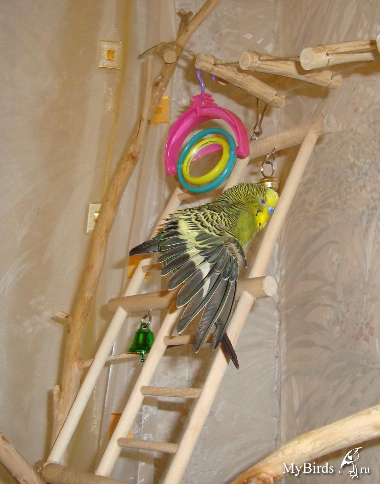 Совет по клетке: все пластмассовые палочки заменить на деревянные с таким диаметром, чтоб лапки обхватывали примерно половину диаметра. Сверху клетки также закрепить деревянную палочку, чтоб птицы меньше лазили по прутьям)