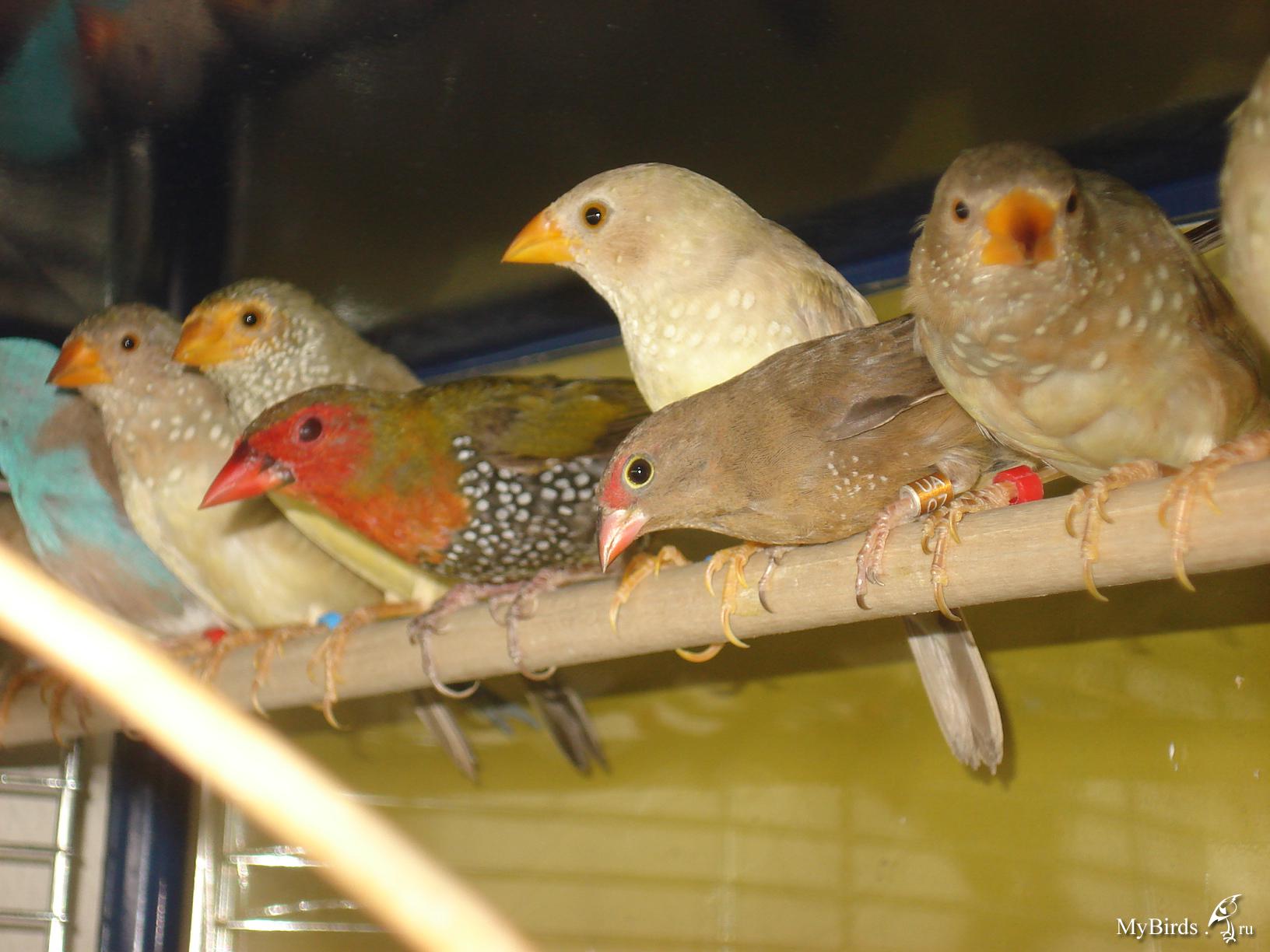 Птичек 10 гульдов, 4 тростника, 4 синеголовых астрильда, 2 зеленоспиных астрильда, ну и стайка тростниковых птенцов, которые когда закончится линька будут искать новых хозяев :) .