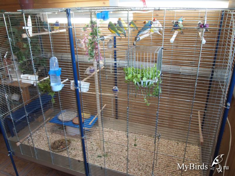 evelin Опубликовано 6 ноября, 2012 #132 Опубликовано 6 ноября, 2012 (изменено) В моем гульдовом царстве появились новые жильцы .Я в полном восторге от этих птах!!! Надеюсь, они порадуют меня в свое время и подарят маленьких жемчужных япончат.Самочка в линьке, так что не судите строго и ей совсем не нравится фотосъемка в отличие от ее партнера. Она более светлого окраса. А мальчишка только перелинял, он немного темнее и смелее . К сожалению, несколько попыток получить потомство, не привели к положительному результату. Видимо самочка не пригодна для разведения. Но спасибо Наталье AZALI, так как я купила ее разведения молодую жемчужную самочку и самца черной мутации - ЭТО ЧТО-ТО !!! Похоже я стала фанатом японских амадин .Позже выставлю его фото. И теперь есть возможность получить птенцов двух мутаций. А теперь немного о том, что происходит с моими гульдами.В этом году, несмотря на полное отсутствие необходимого свободного времени, для того чтобы уделить внимание разведению, я все-таки получила не плохой результат в количестве 10 синих птенцов и примерно такого же количества желтых и серебристых. В процессе первой ювенильной линьки проблемы возникли только с одним синим птенчиком. Остальные птички перелиняли без проблем и замечательно провели лето за городом. Вольер девчонок Вольер мальчишек Изменено 6 ноября, 2012 пользователем evelin