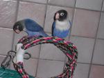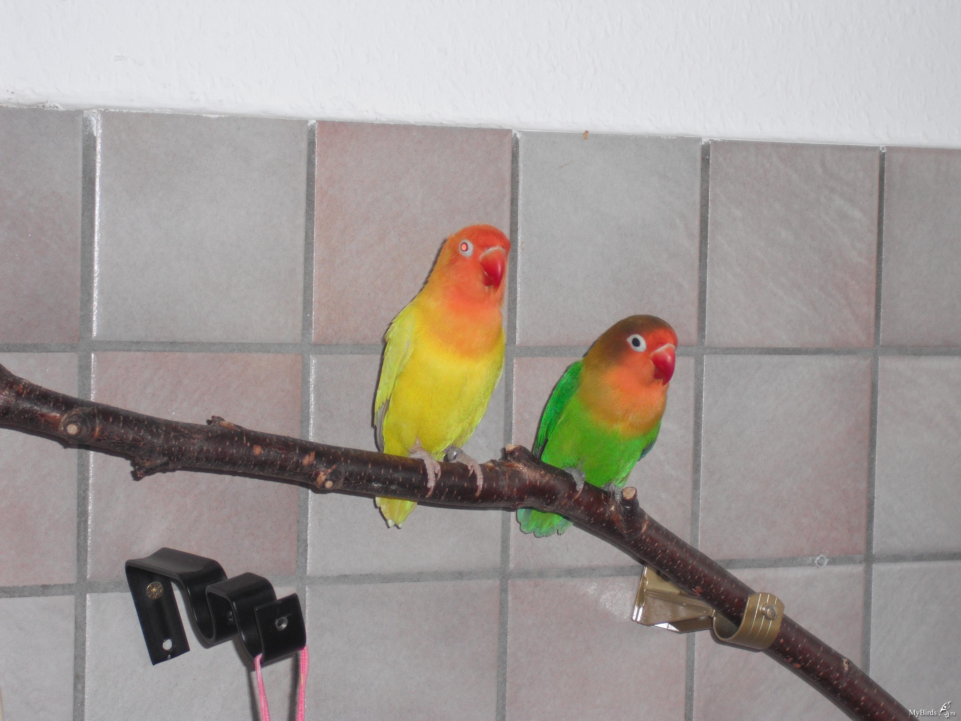 nafanya Опубликовано 22 февраля, 2010 #1 Опубликовано 22 февраля, 2010 (изменено) Добрый день\вечер , 3 дня назад , мы с ребенком, стали обладателями 2 неразлучников. Изначально планировали купить молодых фишеров , но увидев эти две моськи не смогли устоять . Опыта у нас как такового нет ( если не считать волнистика, лет этак надцать назад). Поэтому решила я проконсультироваться с опытными птицеводами . Насколько я понимаю у нас масковые неразлучники ? Цвет фиолетовый . Мы уже третьи владельцы этих пташек, думаю последнии. Со слов бывших хозяев , птици из разных гнезд , девочка и мальчик ,но у птиц нет ДНК теста, поэтому кто есть кто неизвестно . Одного мы назвали - Плюх - у него спокойный характер , неповоротливый и молчаливый. Он окольцован, но,что там написано сейчас не представляется возможным прочитать(птиц - дикий), ему примерно 16 недель и у Плюшкина покалечены лапки - на передних пальчиках нет коготков, такое впечетление , что их откусили . Рубци выглядят старыми. Клюв постоянно немного приоткрыт( даже не знаю нормально ли это ) и слоится . Оперение неровное, хвост и крылья ободраны и вид потрепаный. Летает. Второй - Шустрик, ему около 12-ти недель. Выглядит получше - активный, непоседа, играет , задирает товарища , кормит его, всем интересуется, щебечет . Но сегодня обнаружили , что у птица обрезаны крылья и хвост - летать он не может совершенно, только бегает и ползает. Когда примерно отрастут ? Жалко птица - ему летать хочется . Оба птица неконтактны - шугаются всего, ближе чем на 2 шага к клетке не подпускают, падают на пол и стараются спрятаться друг за друга. Раньше насколько я поняла, они жили в маленькой канареечной клетке, у них небыло ни песка, ни сепии , ни минерального камня, ни купалки . Всем этим птици не интересуются, ветки игнорируют. Едят только зерно и яблоко. Из купалки пьют воду. По-моему они худые, хотя могу и ошибаться, но однозначно ободраные. Люди , посоветуйте , как вернуть птиц к нормальной жизни. Больше всего переживаю за Плюха - похоже он слабое звено, уж сильно флегматичен. Сейчас заказала им большую клетку, купили игрушки и все, что написано в курсе молодого бойца . Только Витасол я не нашла, его у нас не продают , нашала Витакрафт - можно ли давать его ? Как их научить пользоваться хотя бу камнем и сепией, у обоих клювы огромнае и как обрезать когти ? - там тоже не все благополучно .И еще , сегодня Шустрик начал щипать Плюха, громко чирикая , тот огрызался и пищал . После того как я подошла, оба забились в угол , может мне их рассадить от греха подальше ? Вообщем спасайте кто может , заранее спасибо за участие Изменено 22 февраля, 2010 пользователем nafanya
