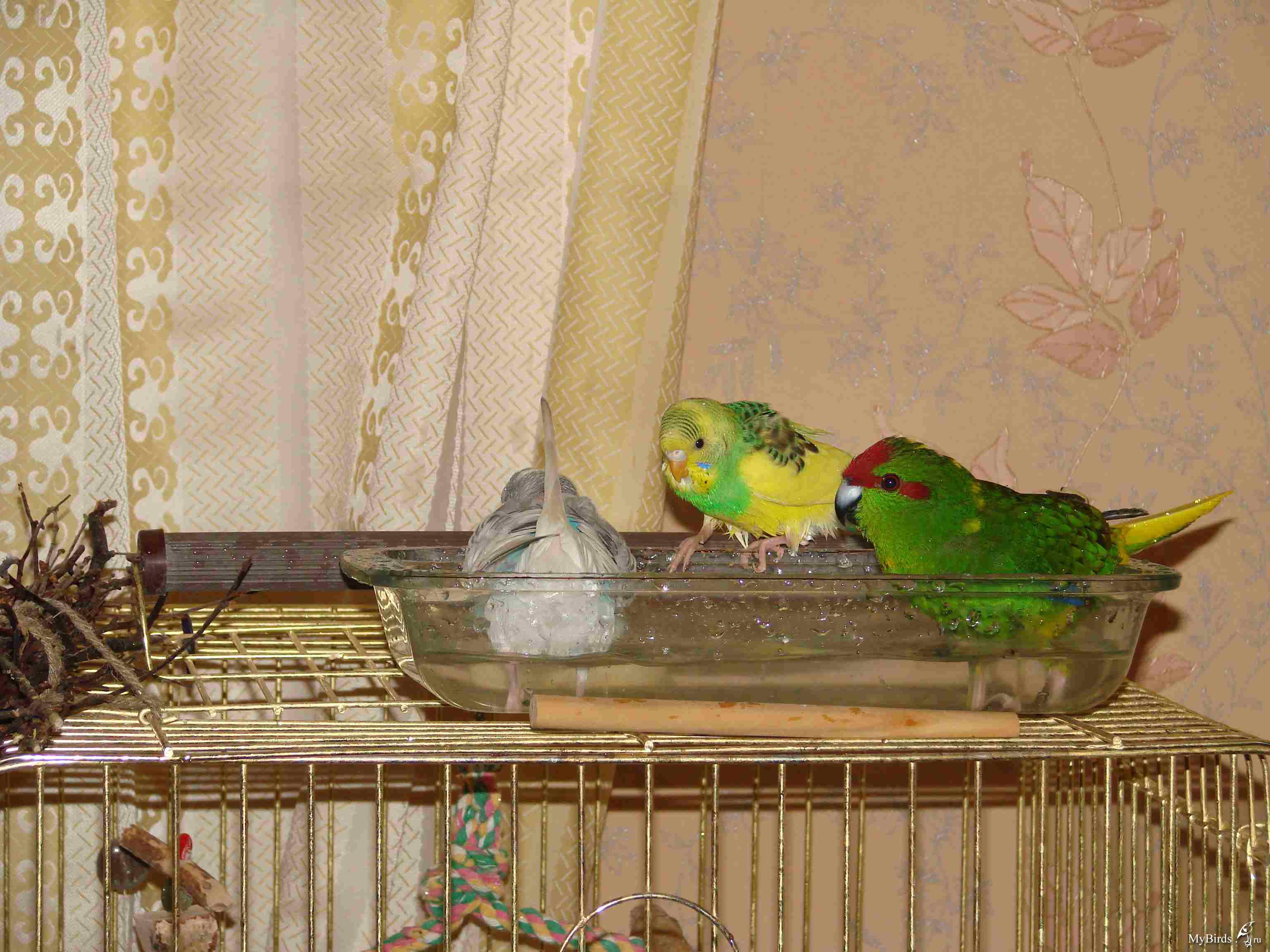 begpovo Опубликовано 9 марта, 2010 #1 Опубликовано 9 марта, 2010 Позвольте представится, Кузьма... или просто Кузя У нас он уже третью неделю. Освоился, со всеми познакомился. Какие будут мнения по поводу нашего пола, мы действительно мальчик? Имя далось не сразу, некоторые носил по полдня, какие-то держались не больше часу. Кузя закрепилось, его родного старшего брата тоже так зовут .Кузин голосок мы услышали сразу, правда приходилось прислушиваться, очень редко и тихо вставлял свои словечки. Последние два дня как подменили, совсем ушла робость. Что-то среднее между куренком и утенком ко-ко-ко и кря-кря. Первый день сидел и наблюдал за происходящим спокойно. Второй-третий день, когда остальная компания гуляла, Кузя изображал из себя графа Дракулу, нарезал круги во всех направлениях по клетке, всем своим видом показывая, что он хочет тоже!!! Следующие два вечера просидел на карнизе, а потом пошел знакомиться. Сразу позвал ребят купаться а они не отказались .Отношения сложились теплые и доверительные .